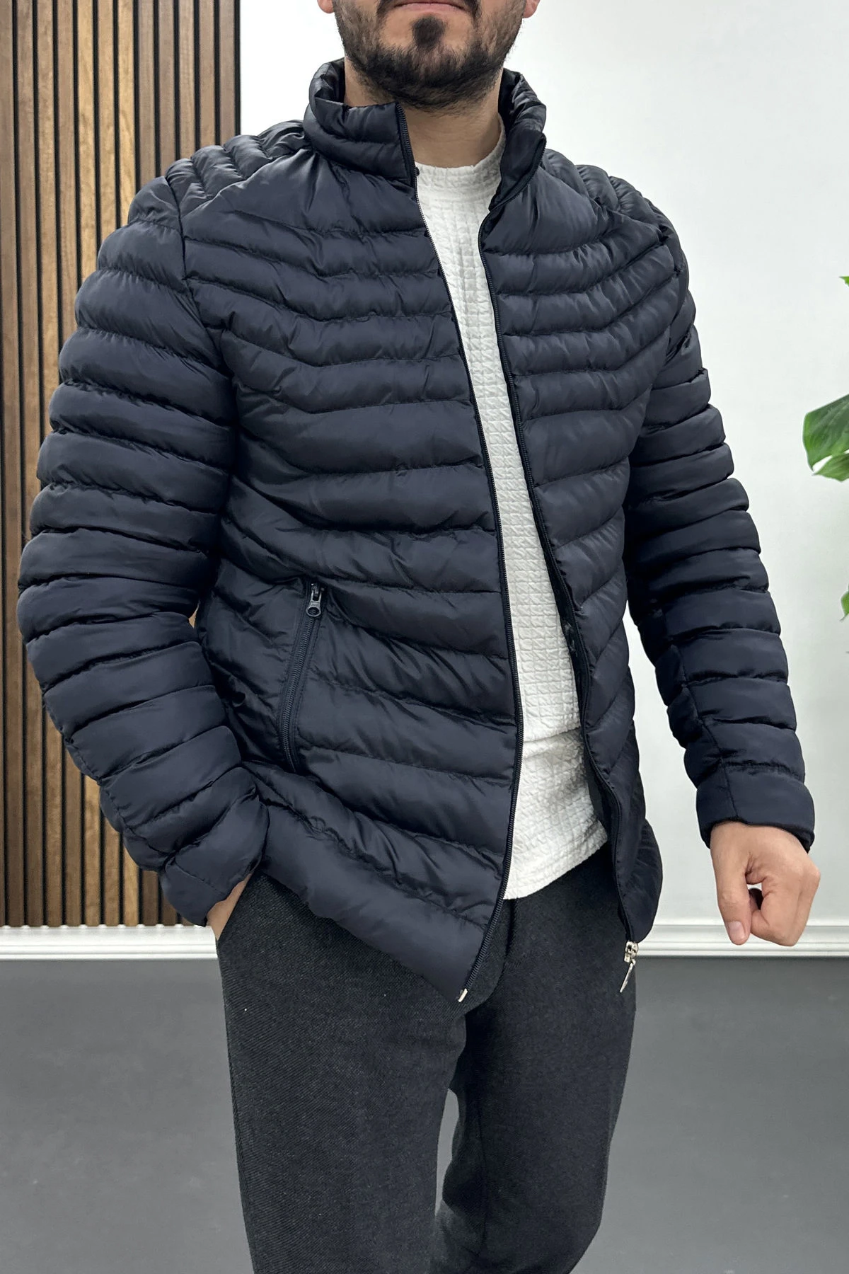 Erkek Slim Fit Şişme Mont Lacivert Edw435