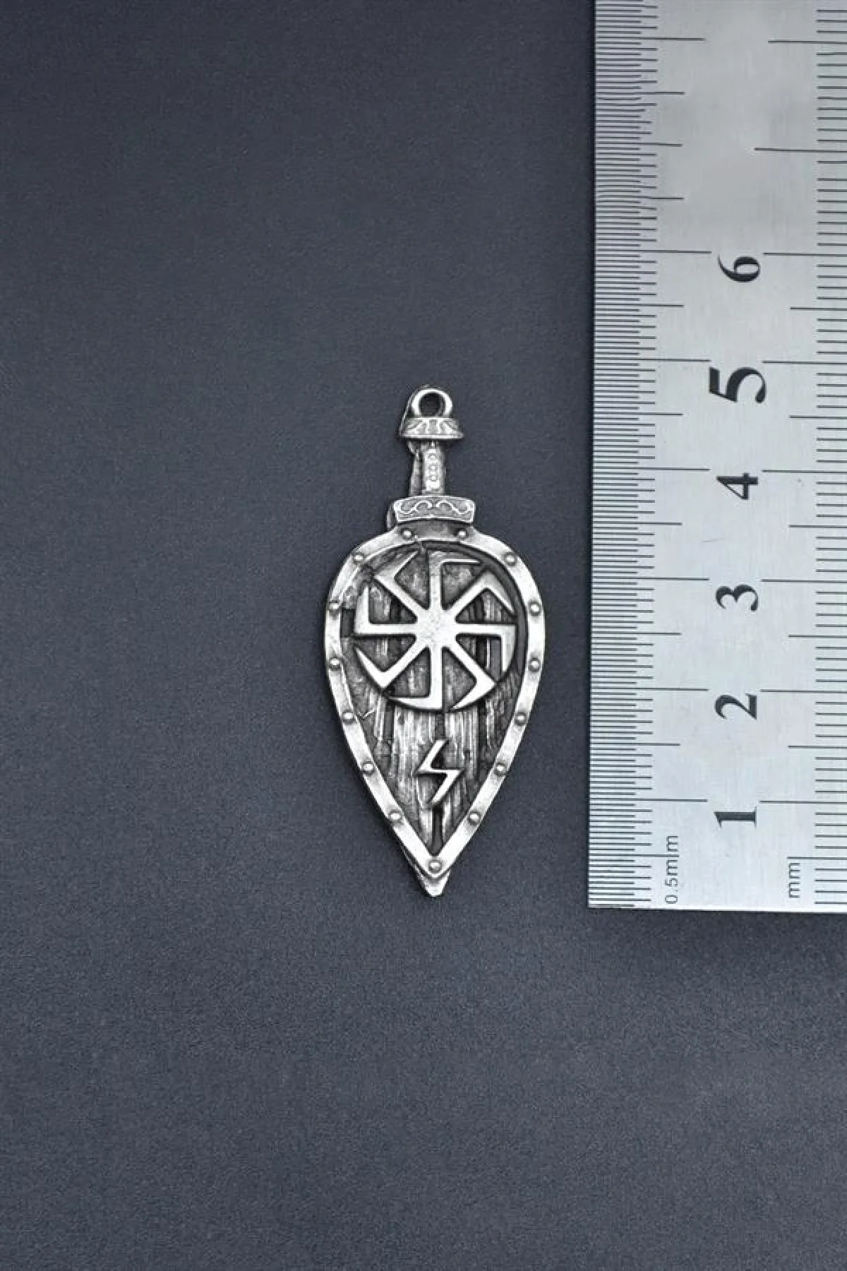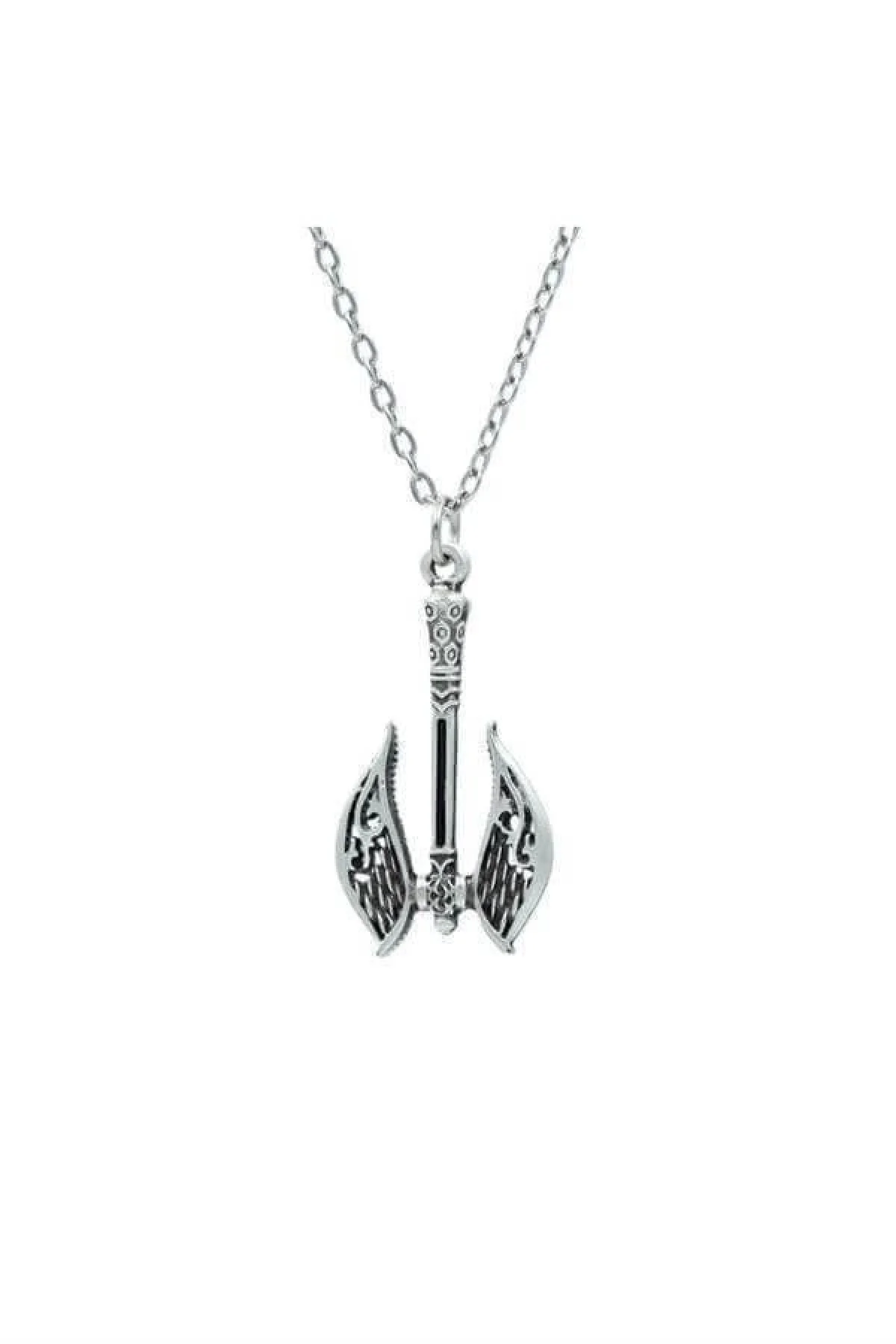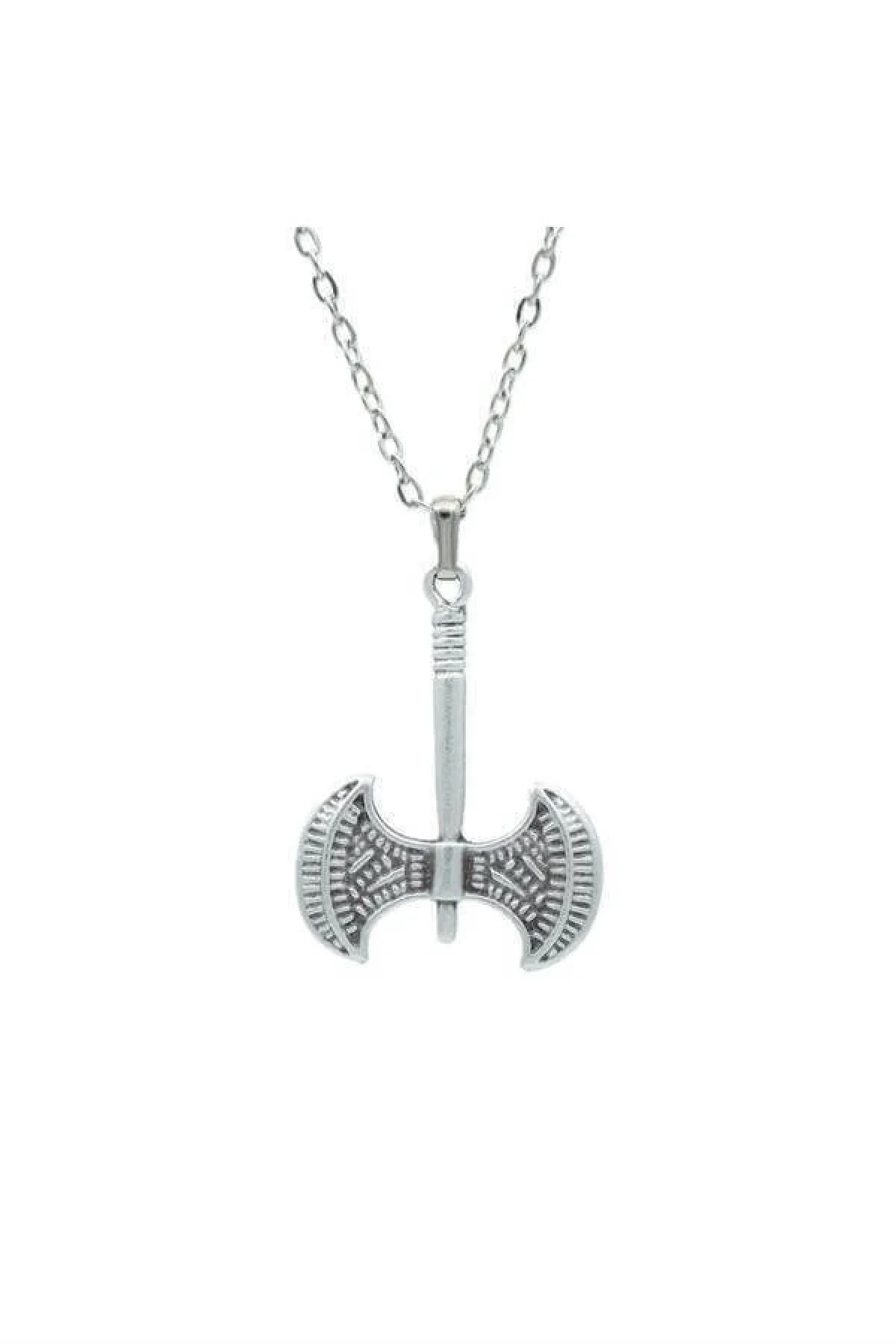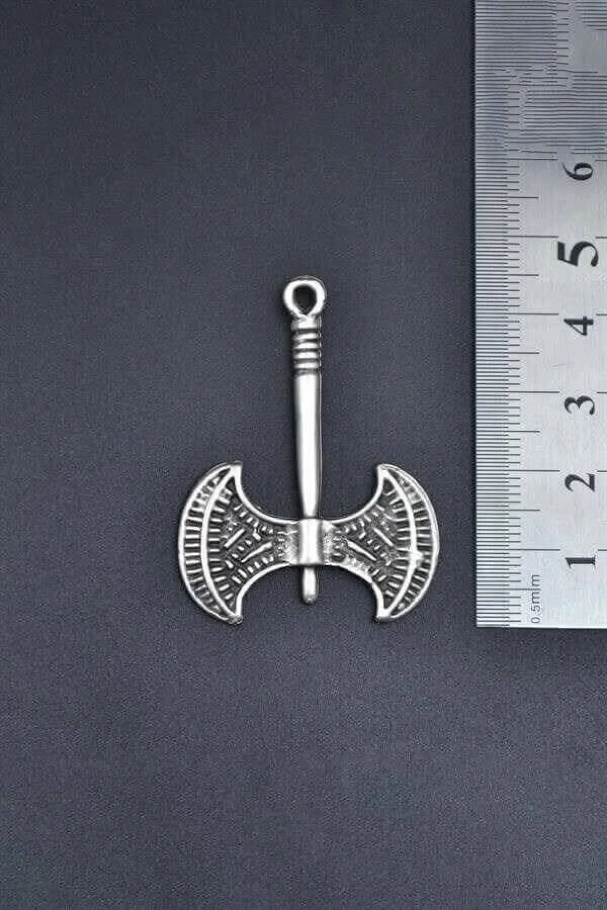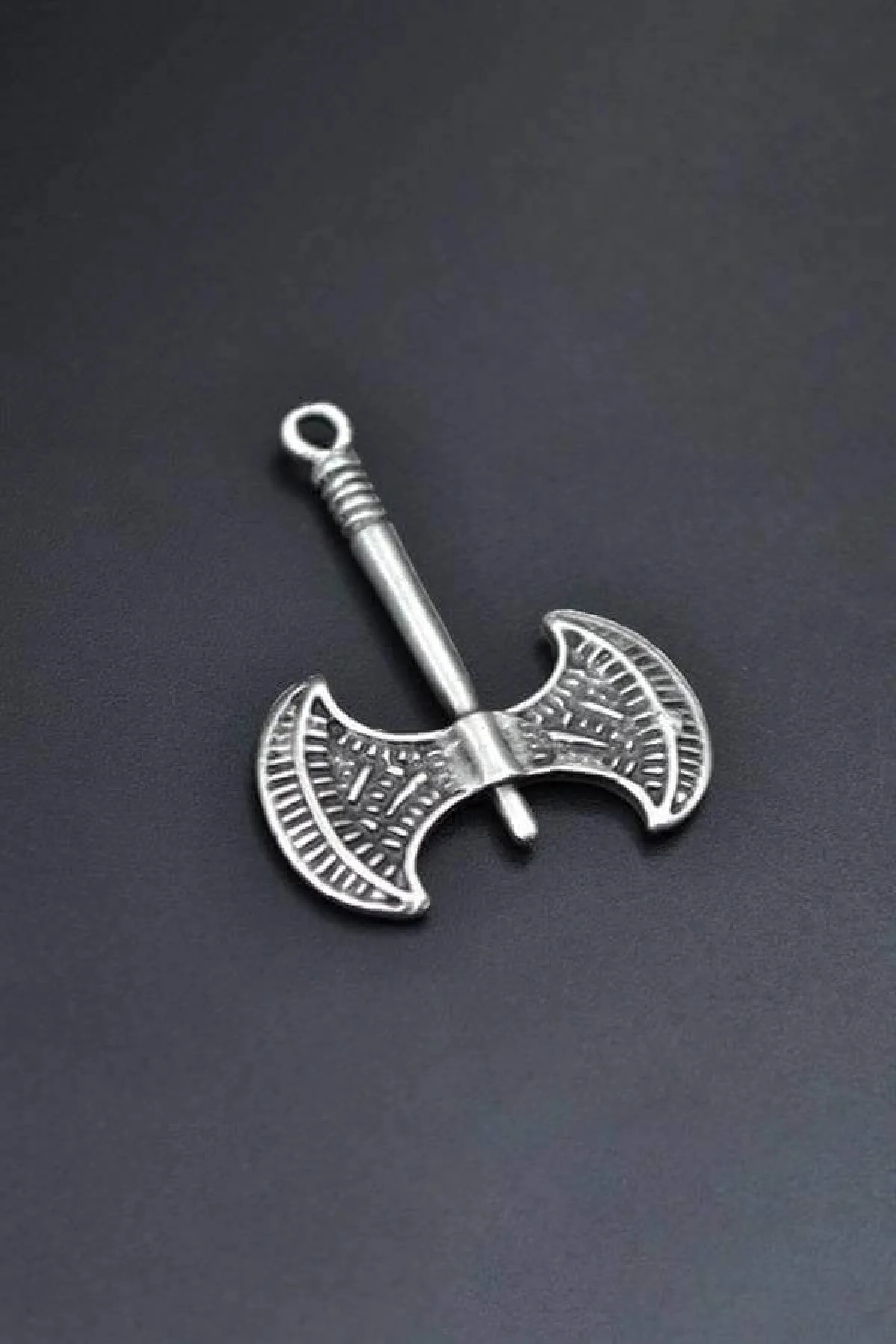 Çift Taraflı Balta Gümüş Kaplama Kolye