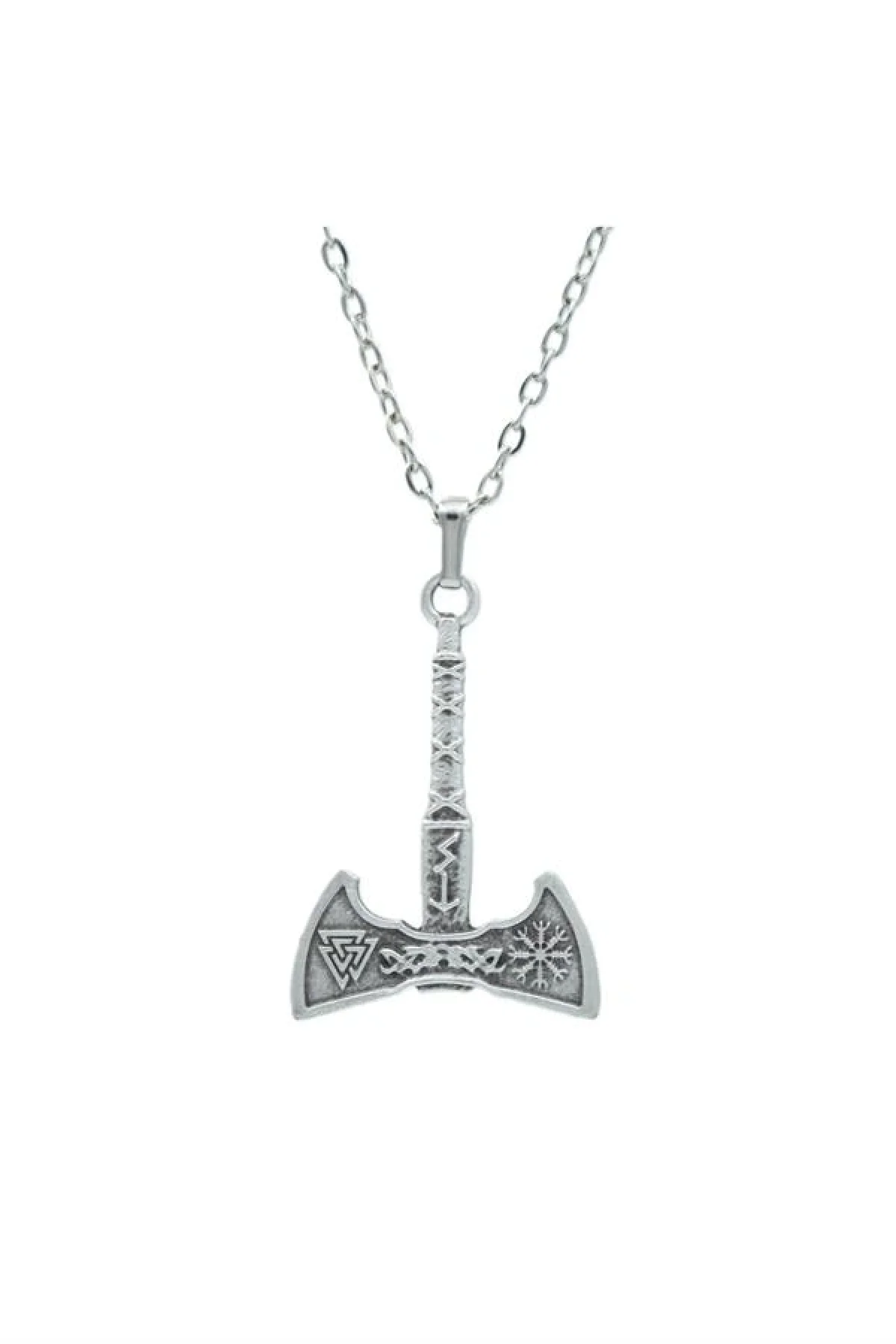 Viking Çift Taraflı Balta Gümüş Kaplama Kolye