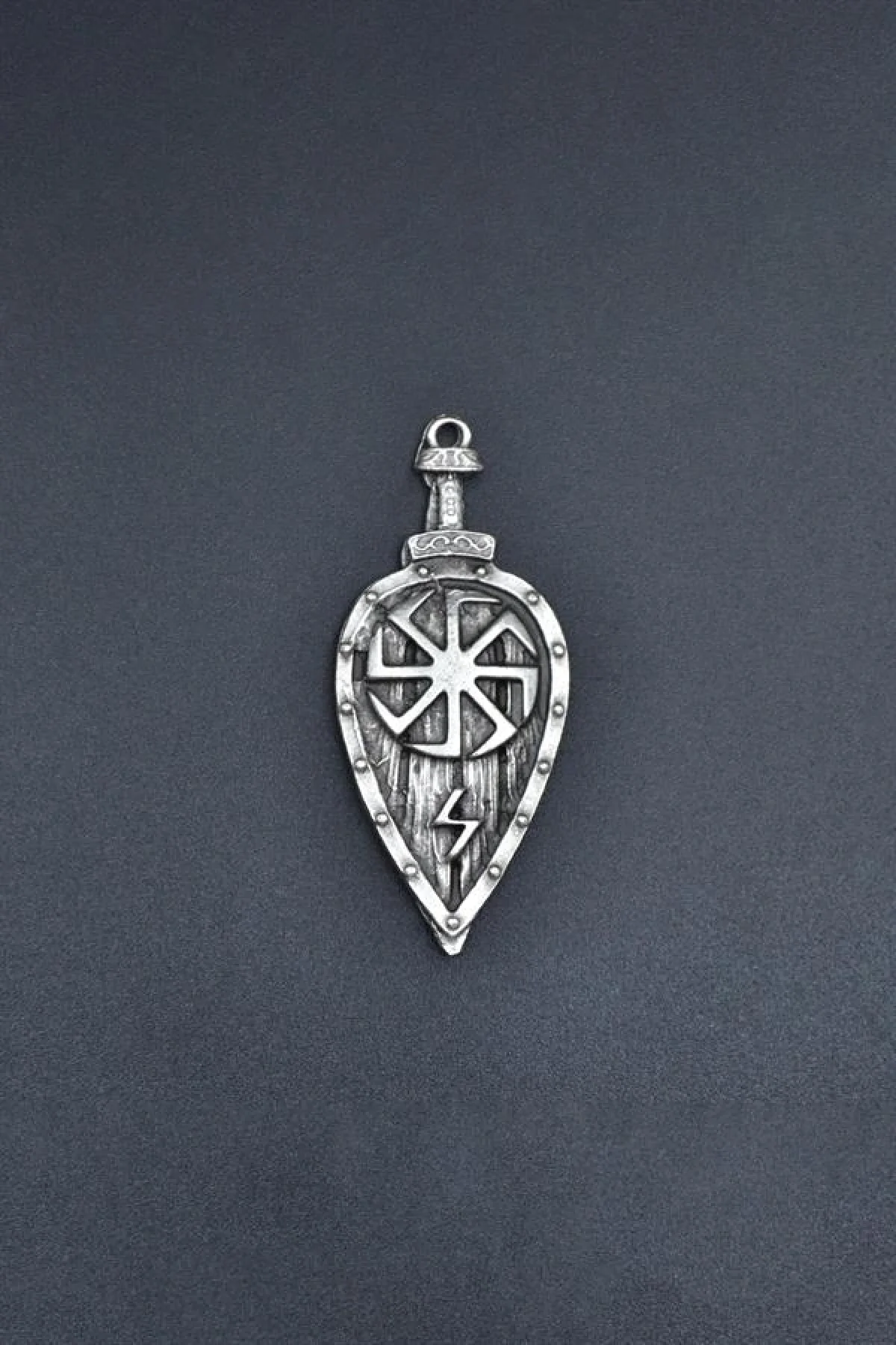 Viking Pusula - Sembolleri Gümüş Kaplama Kolye