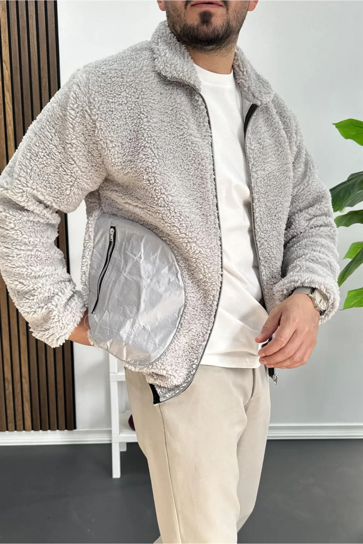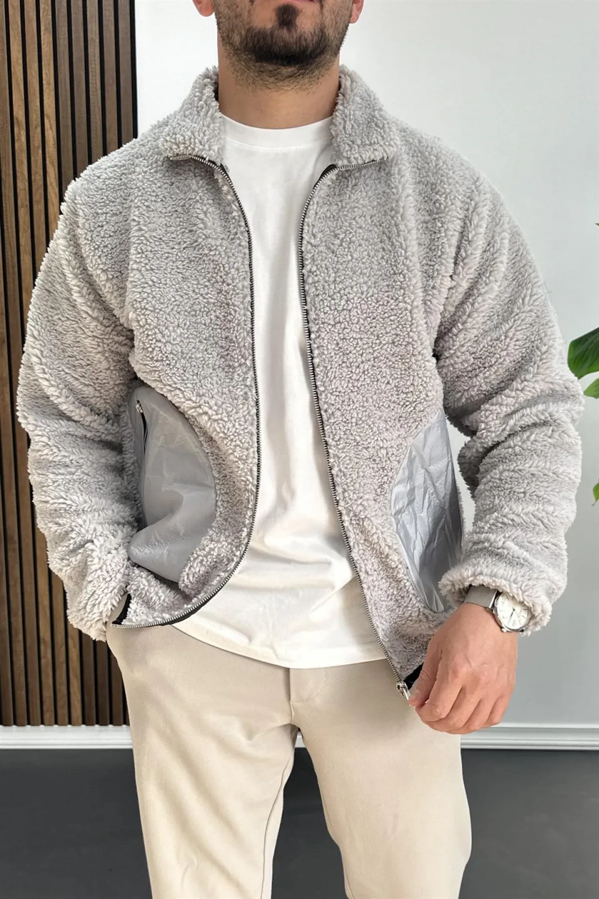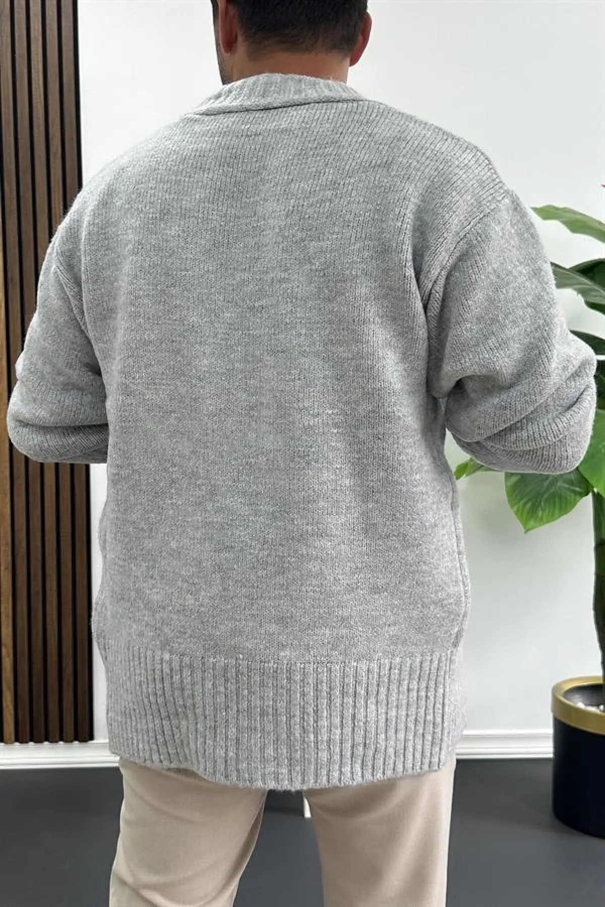 Erkek Cep Detaylı Peluş Hırka Gri Edw432