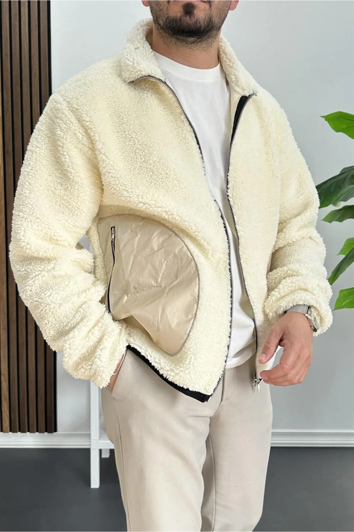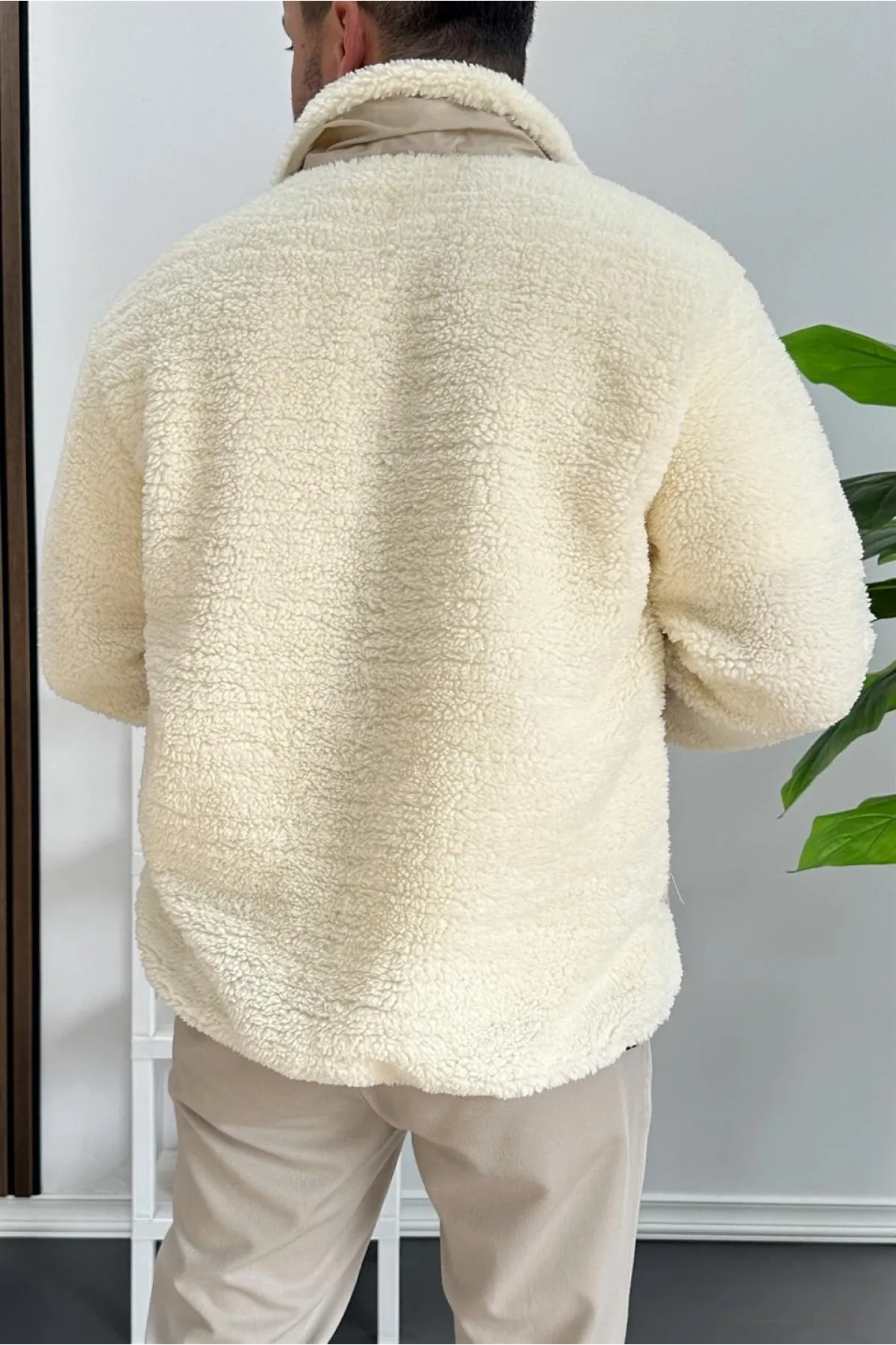 Erkek Cep Detaylı Peluş Hırka Krem Edw432