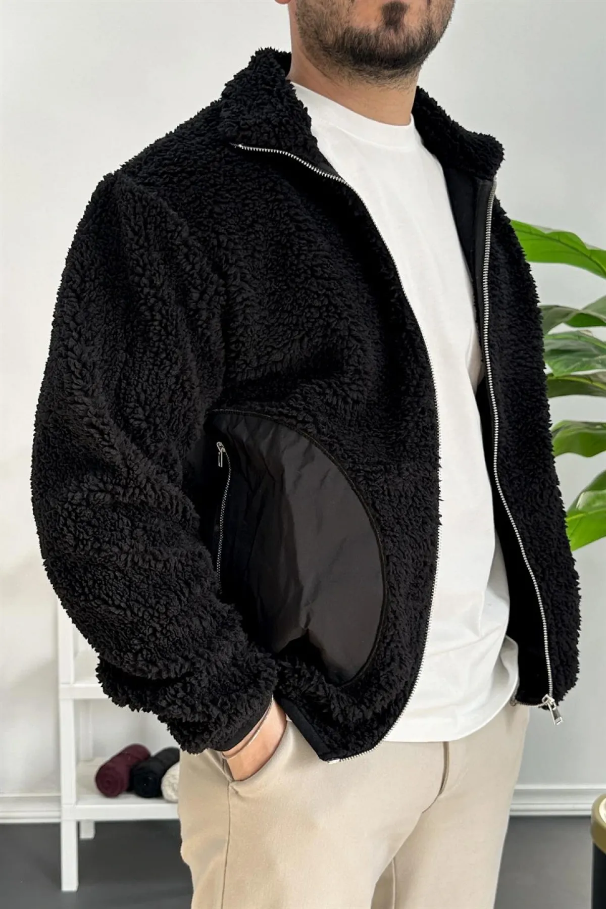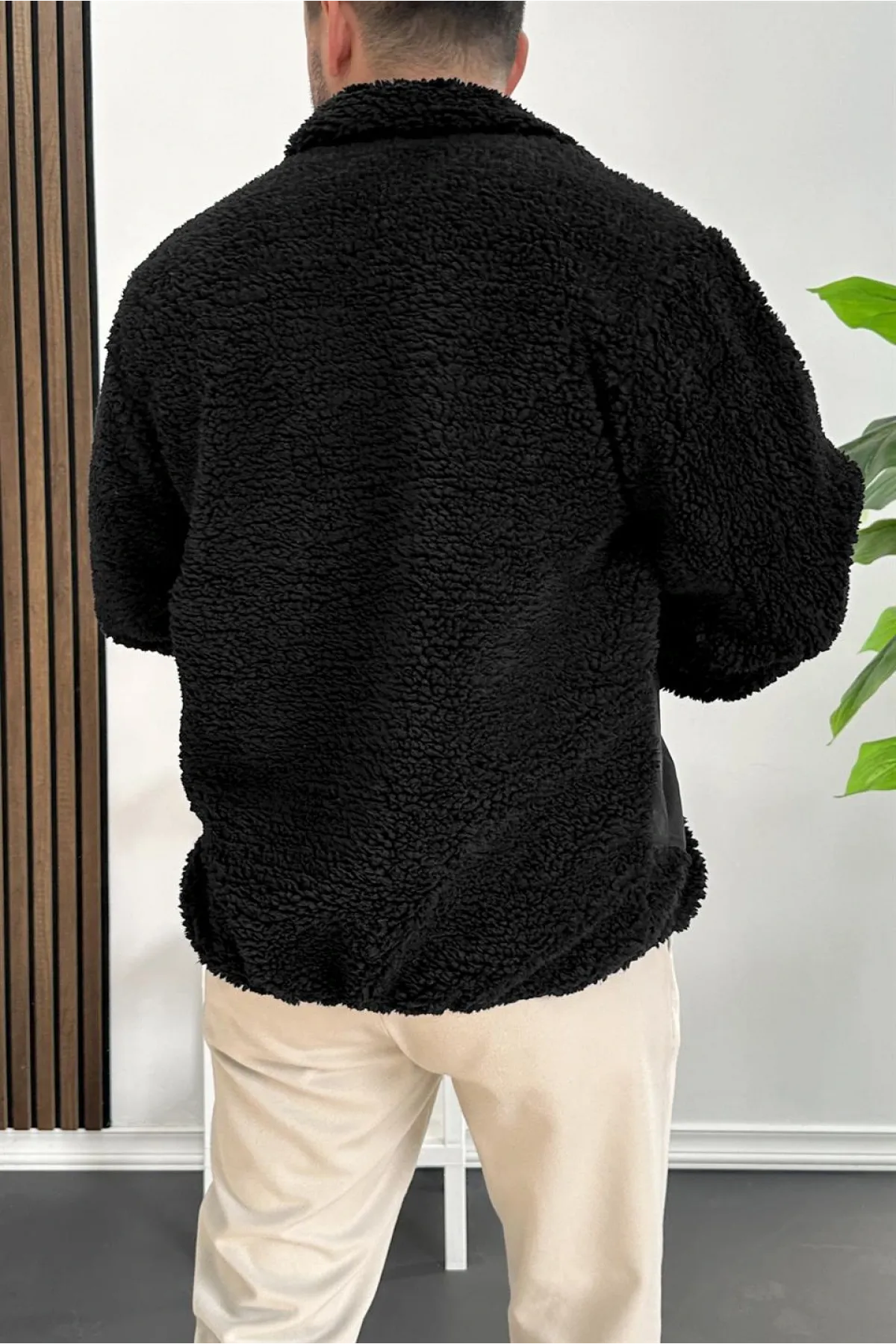 Erkek Cep Detaylı Peluş Hırka Siyah Edw432