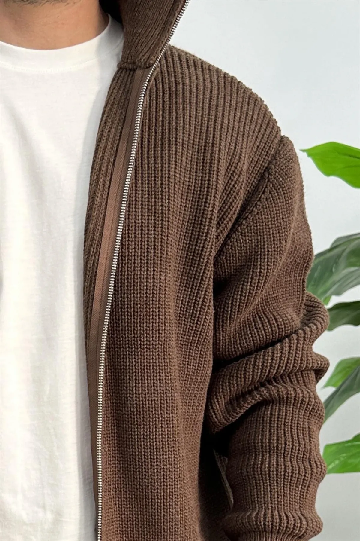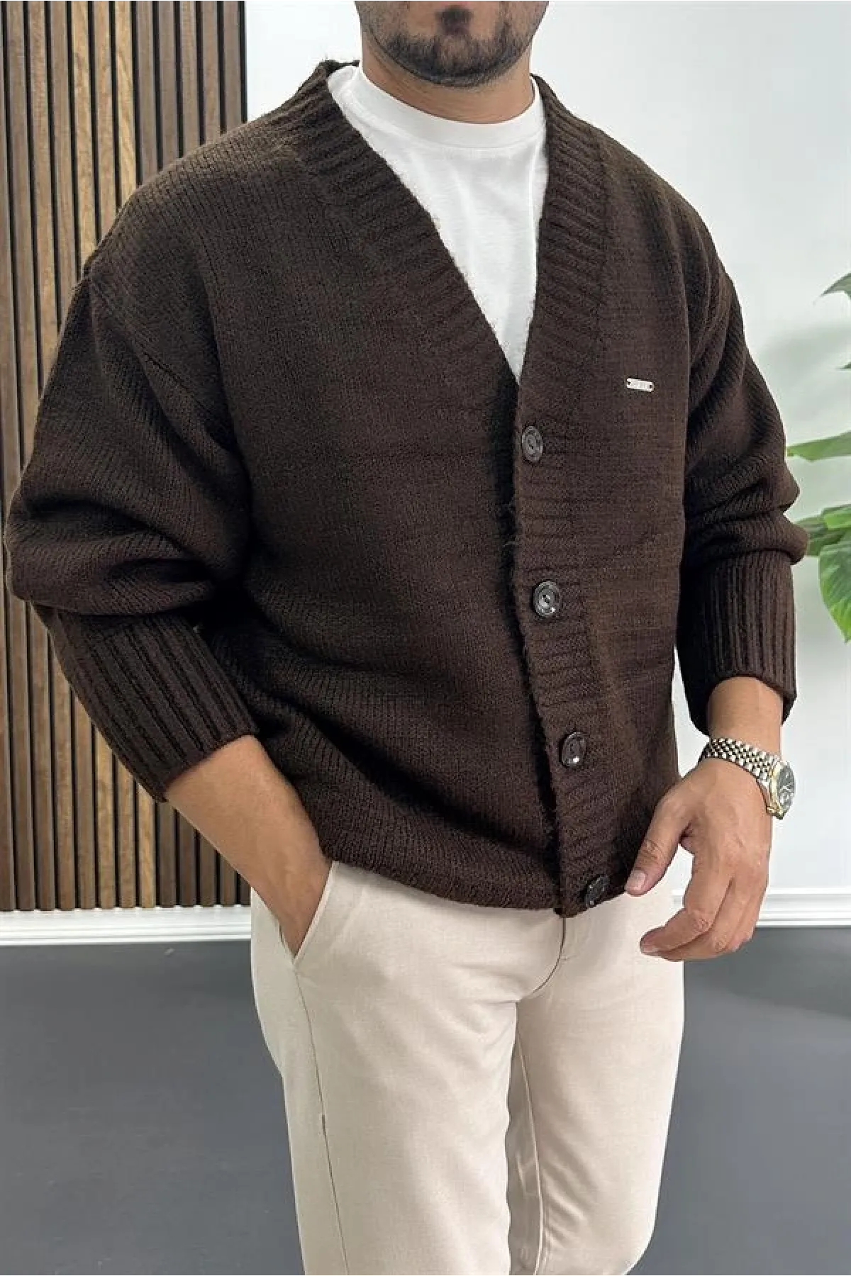 Erkek Oversize Örgü Hırka Kahverengi Edw433