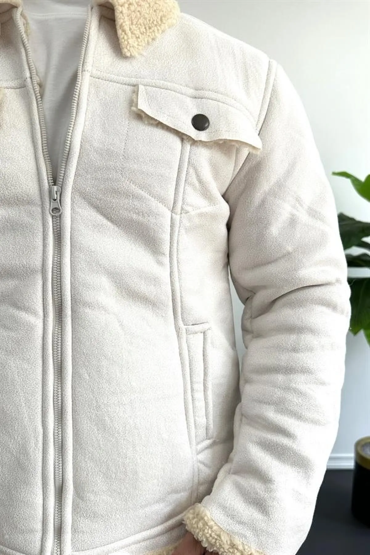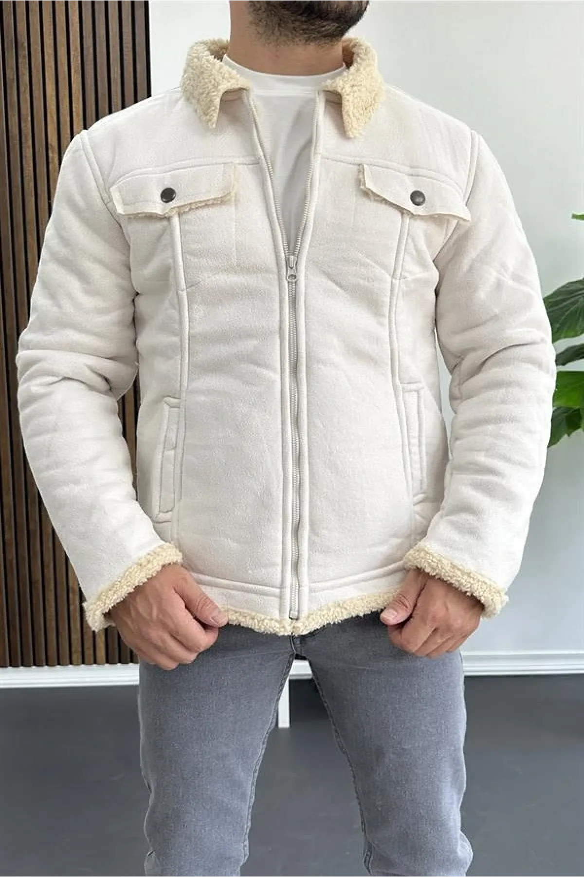 Erkek İçi Kürklü Suni Pul Deri Mont Krem Edw120