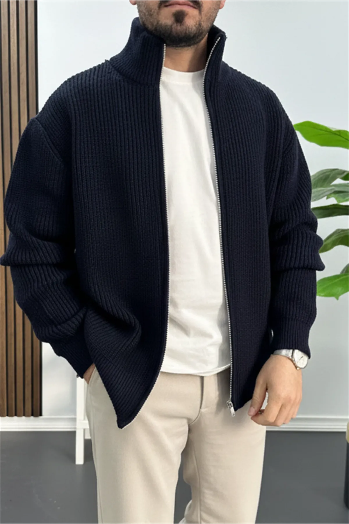 Erkek Slim Fit Fermuarlı Hırka Lacivert Edw434