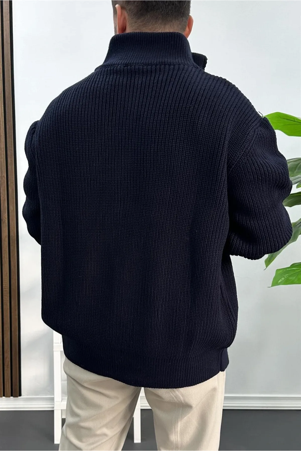 Erkek Oversize Örgü Hırka Lacivert Edw433