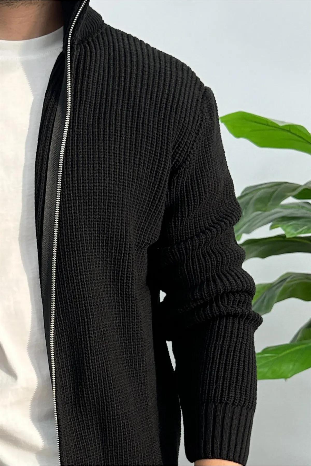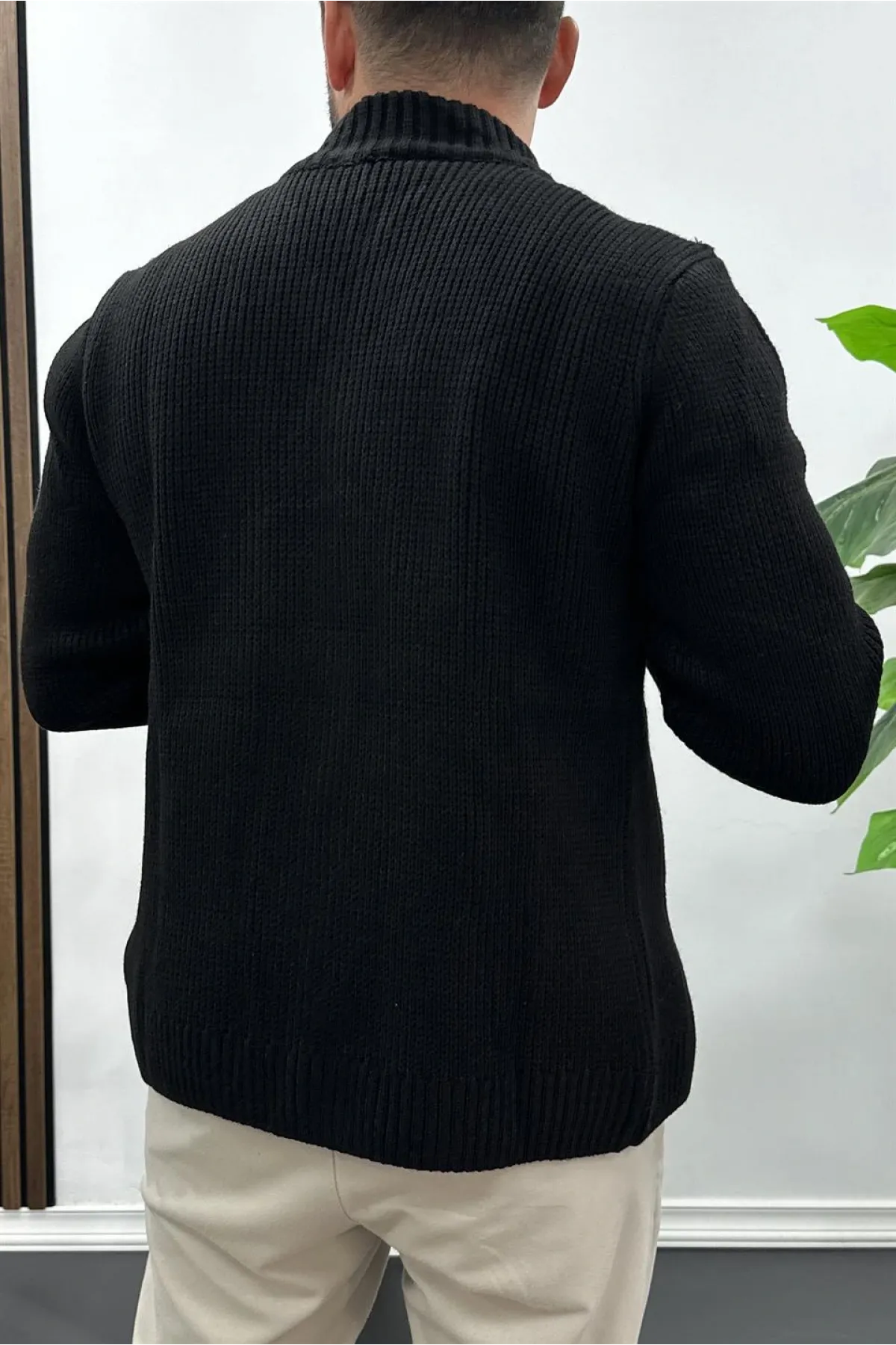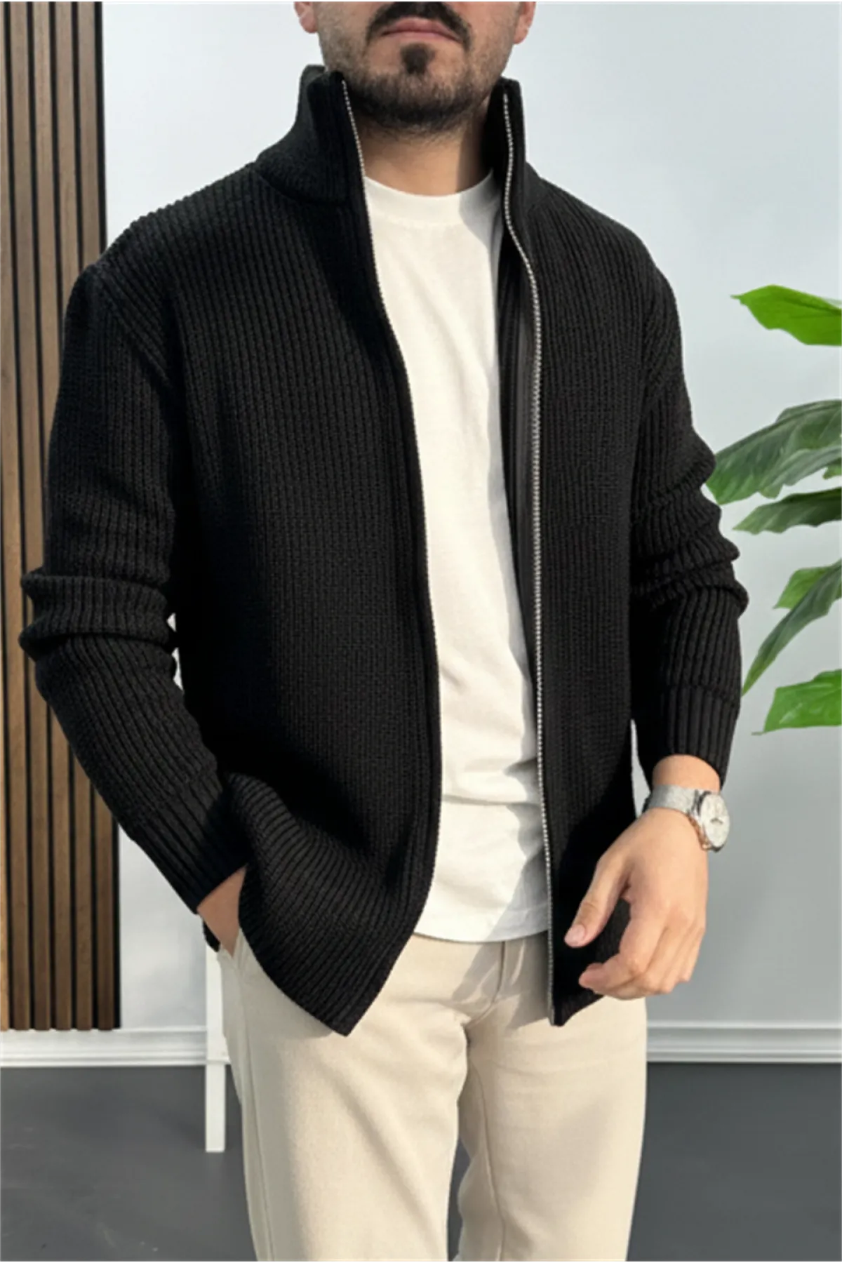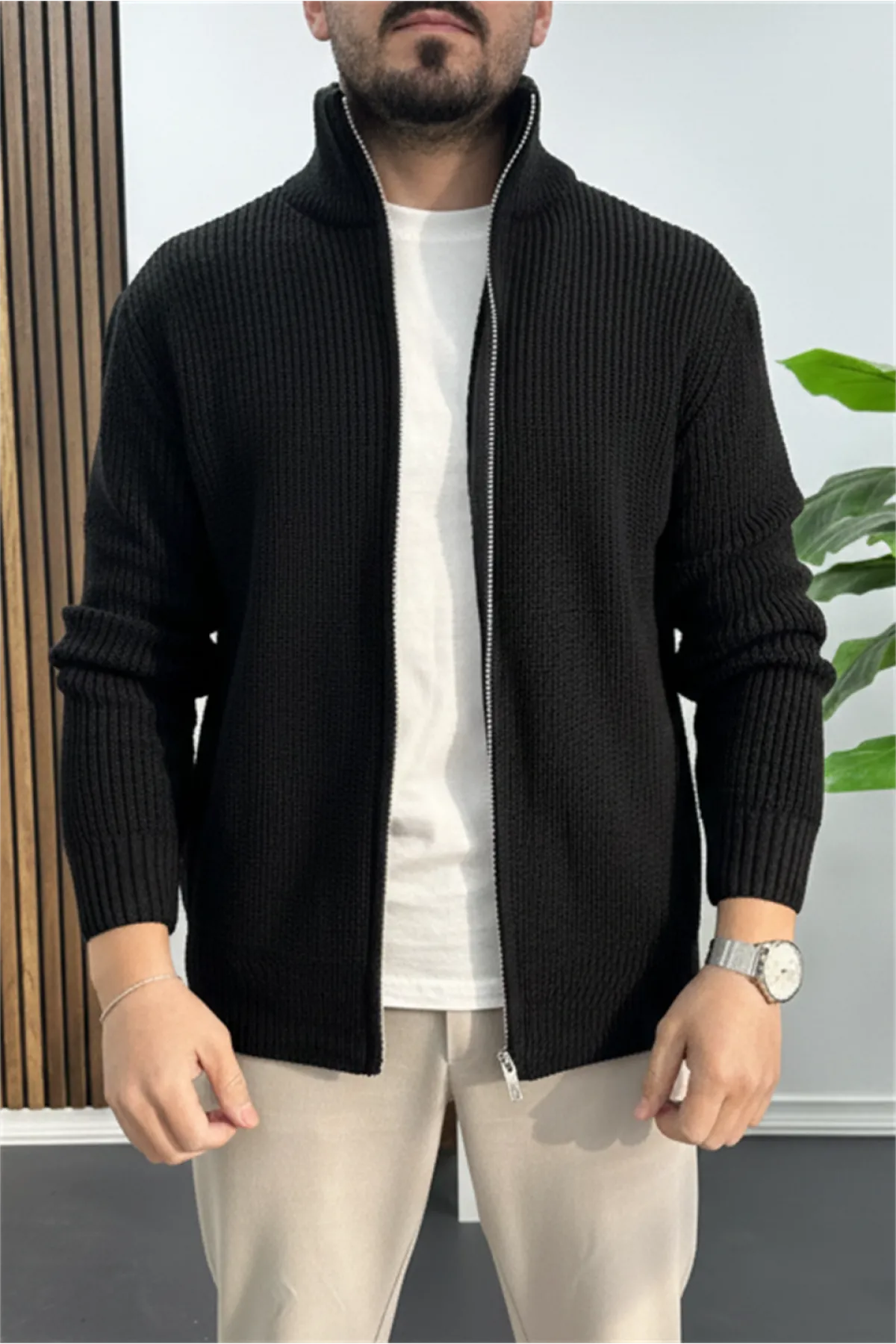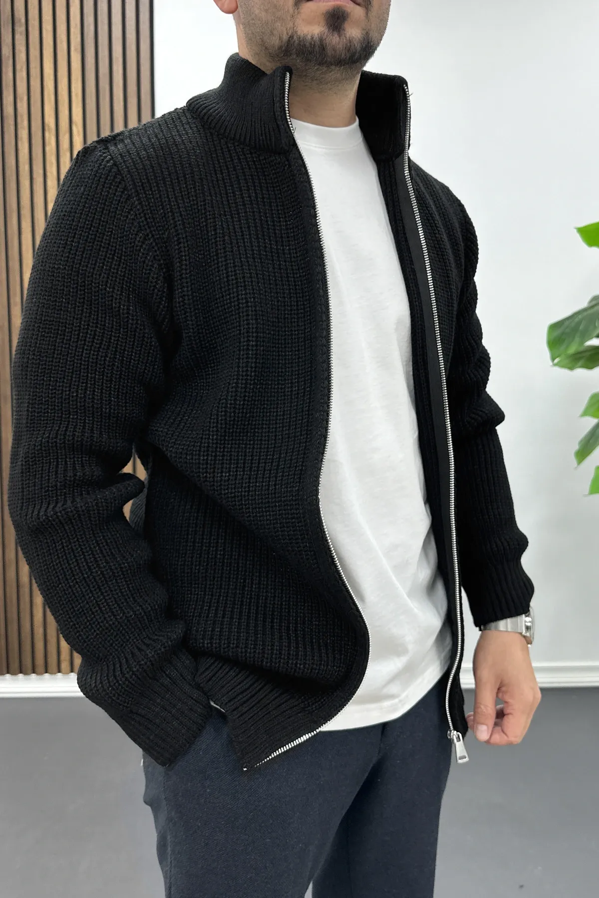 Erkek Slim Fit Fermuarlı Hırka Siyah Edw434