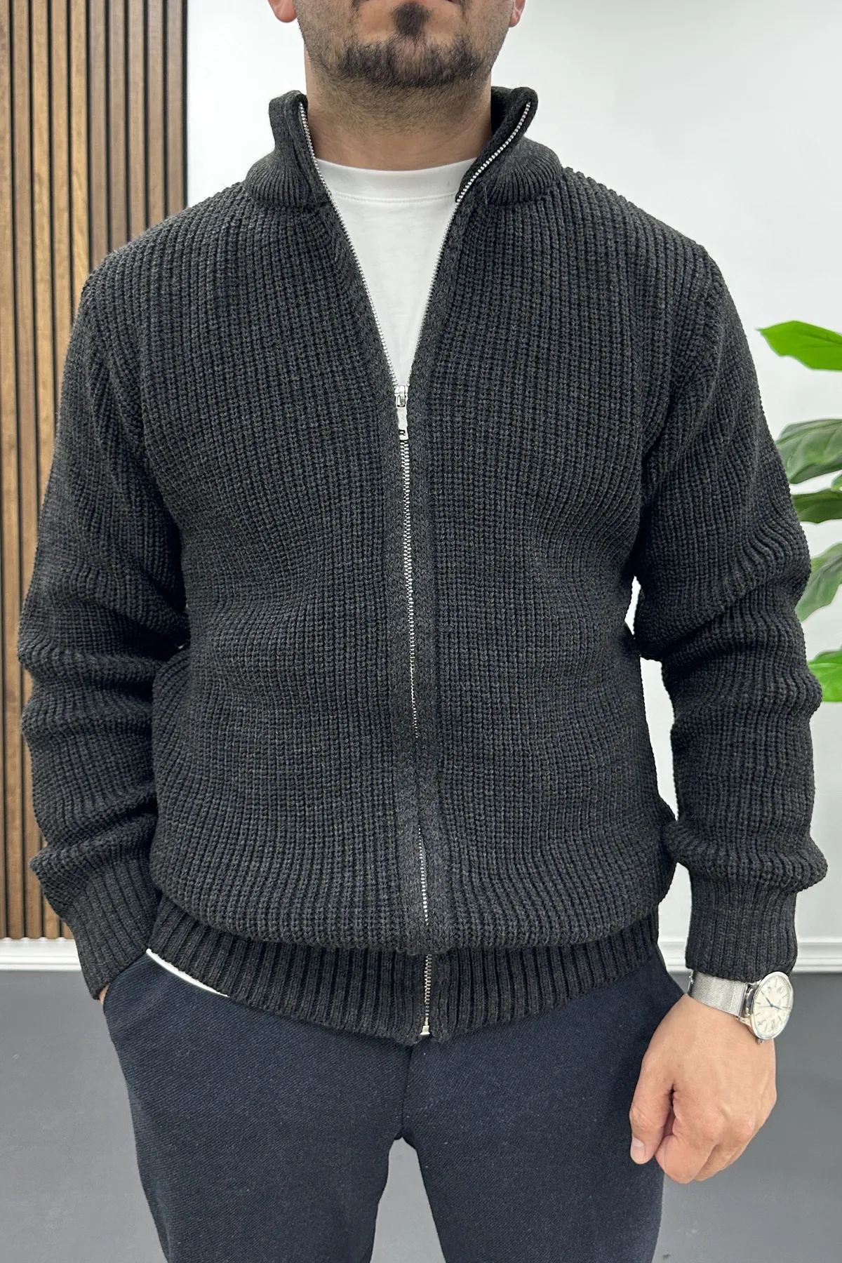 Erkek Slim Fit Fermuarlı Hırka Antrasit Edw434