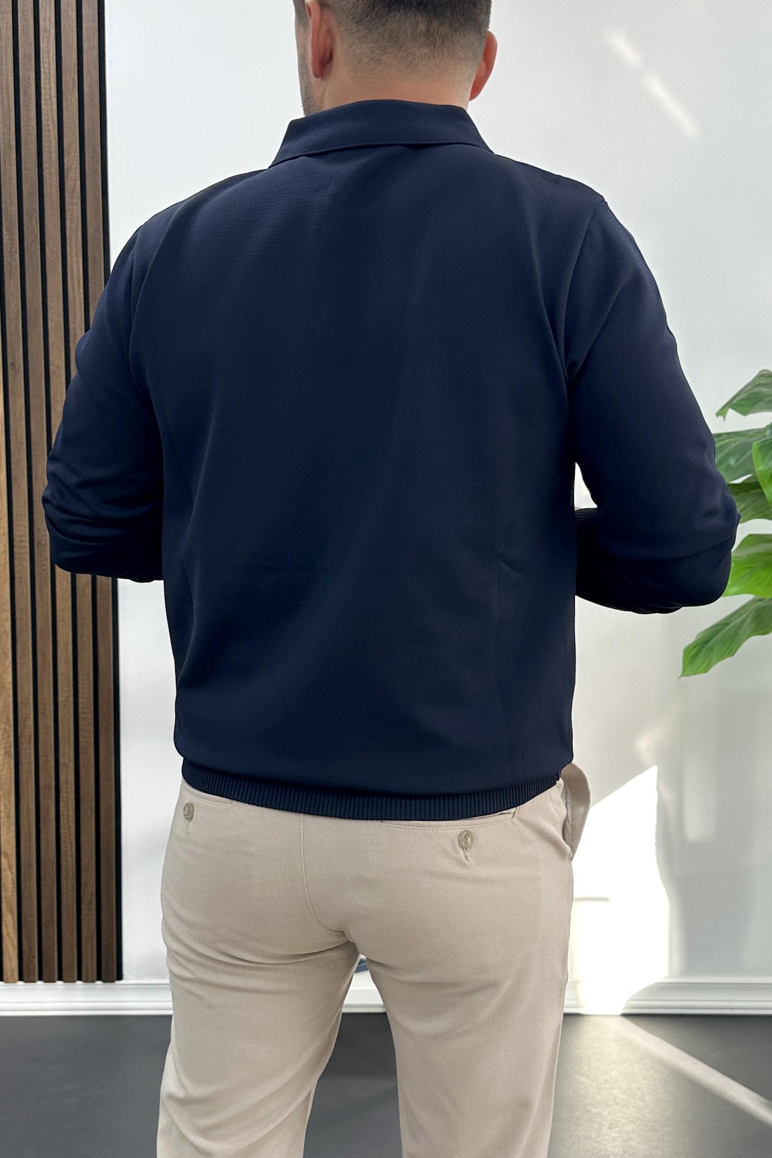 Erkek Açık Yaka Düz Desen Normal Kalıp Kazak Lacivert Edw423