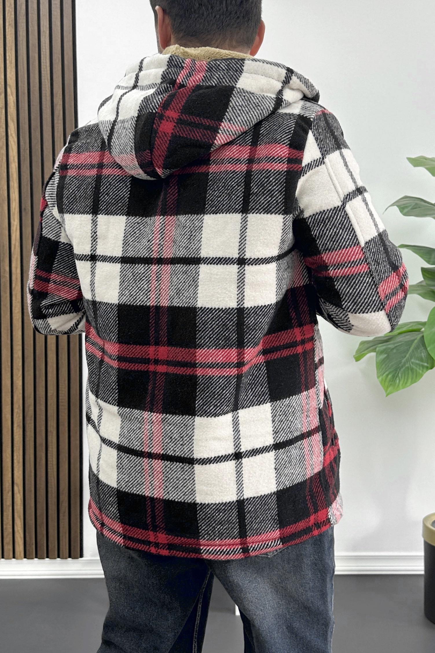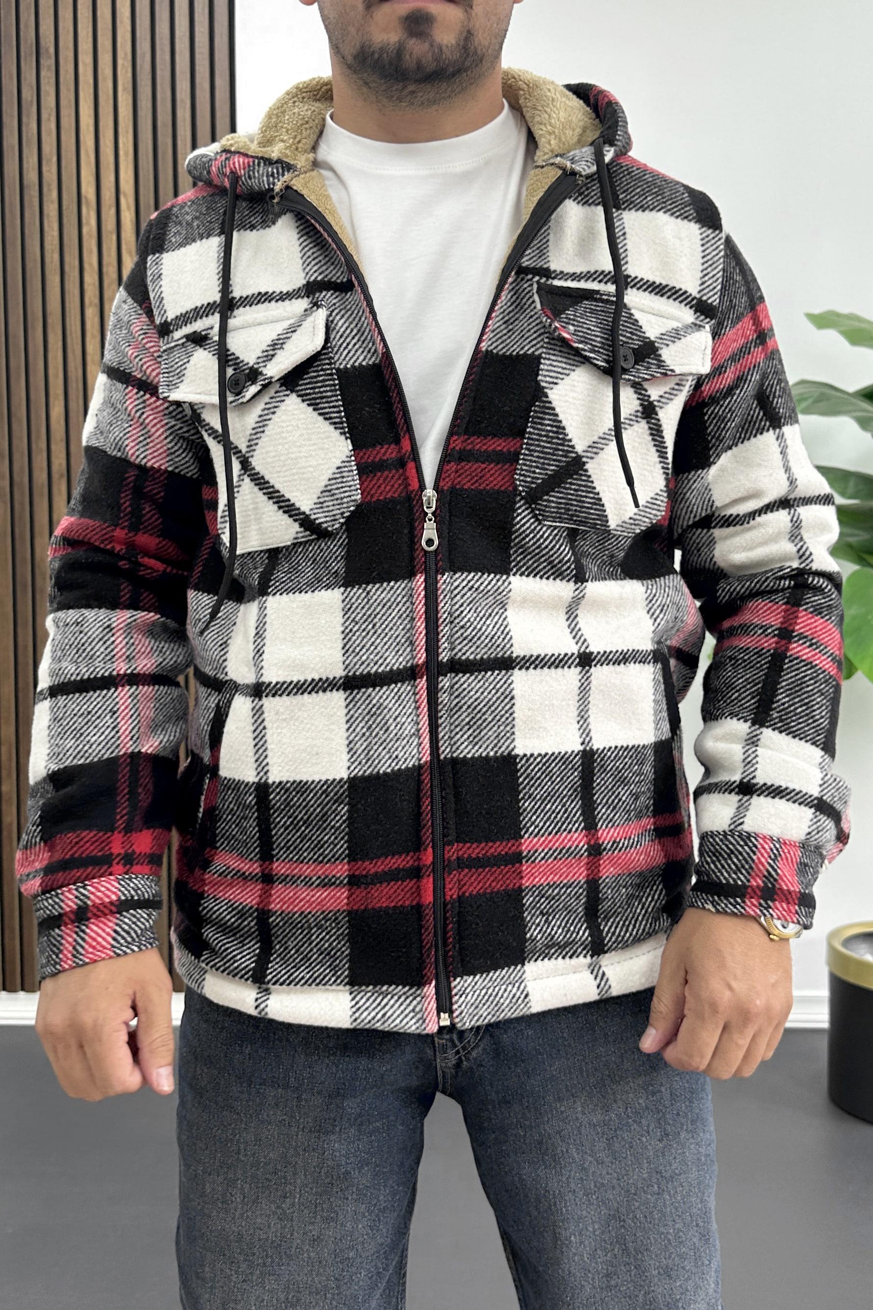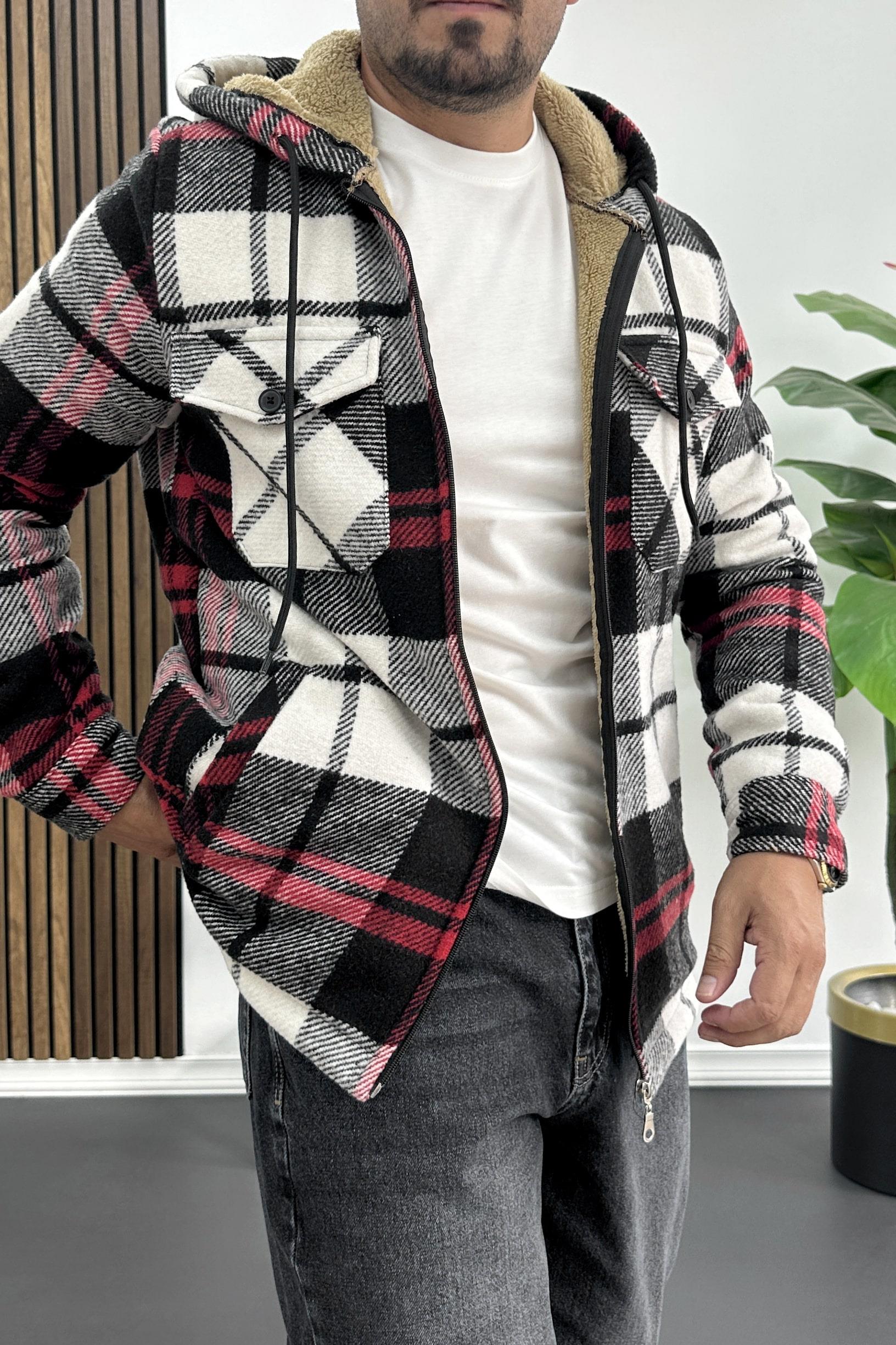 Erkek İçi Kürklü Kapüşonlu Ceket Beyaz Edw418