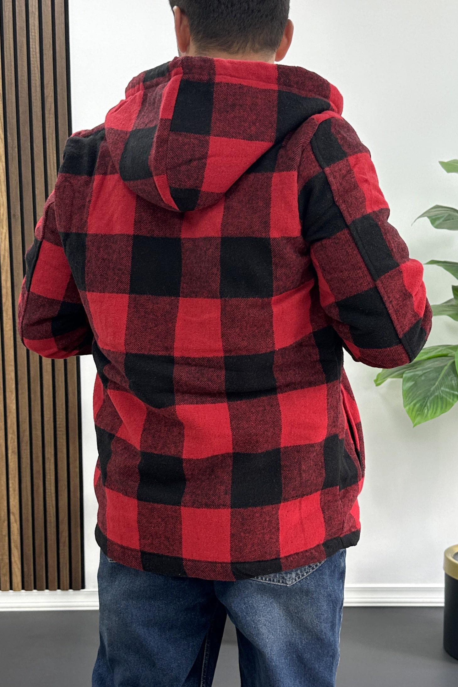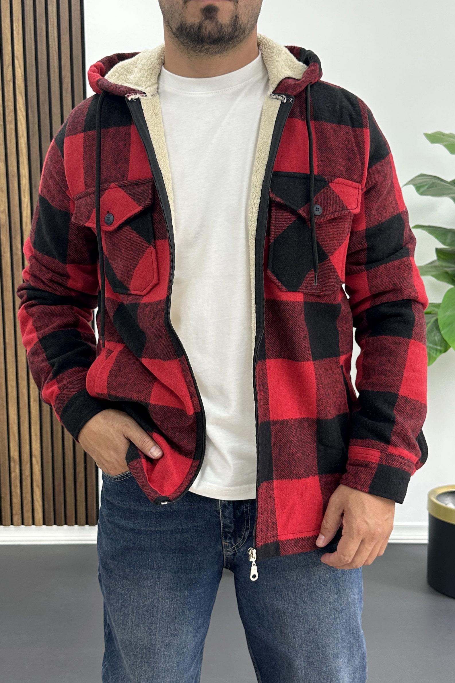 Erkek İçi Kürklü Kapüşonlu Ceket Kırmızı Edw418
