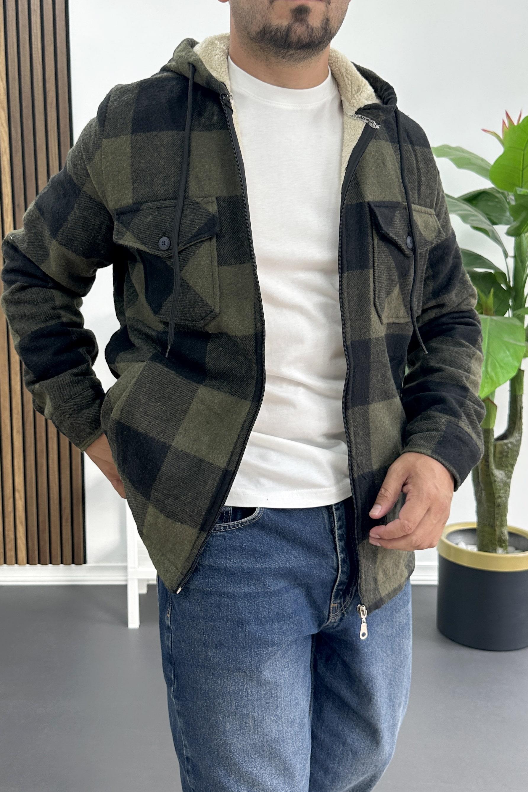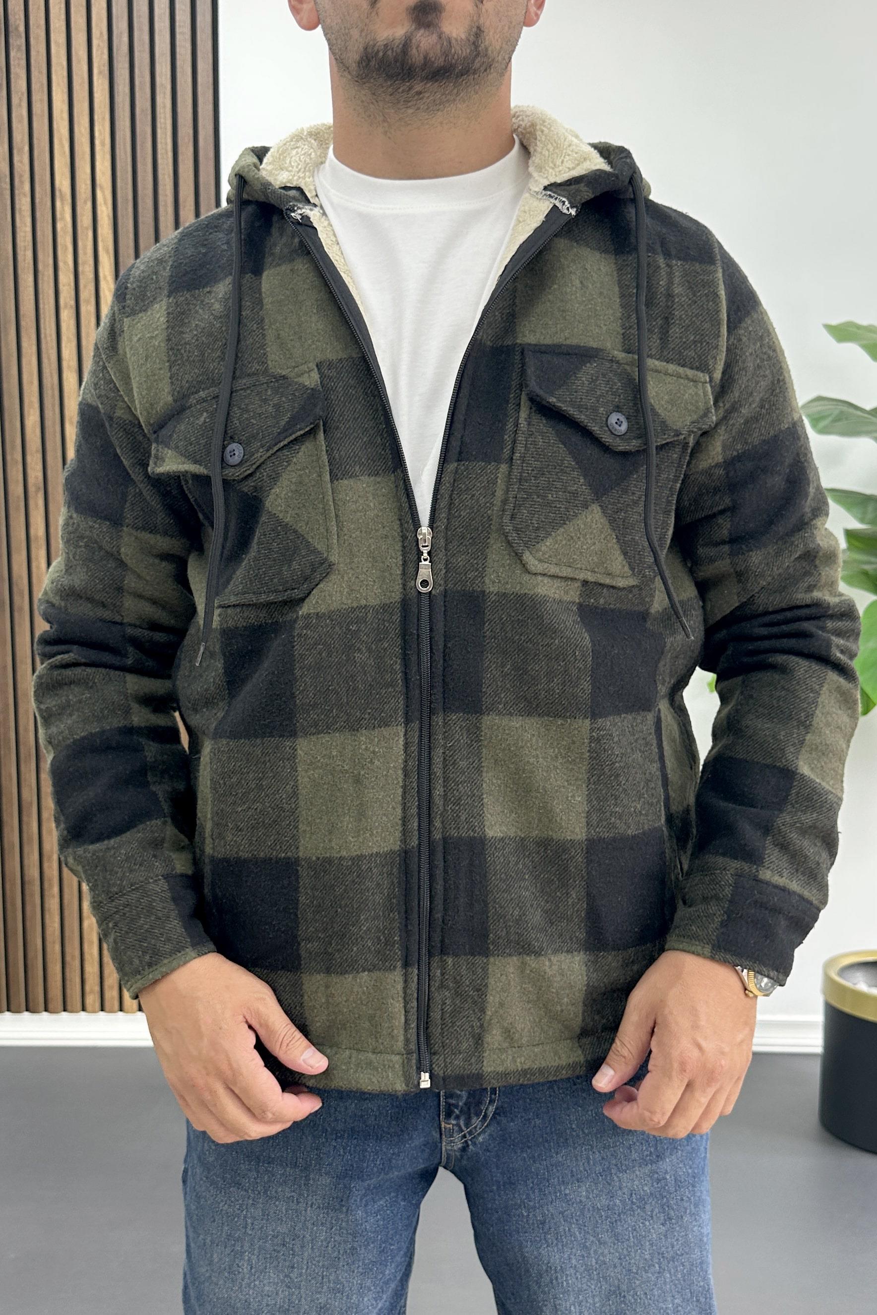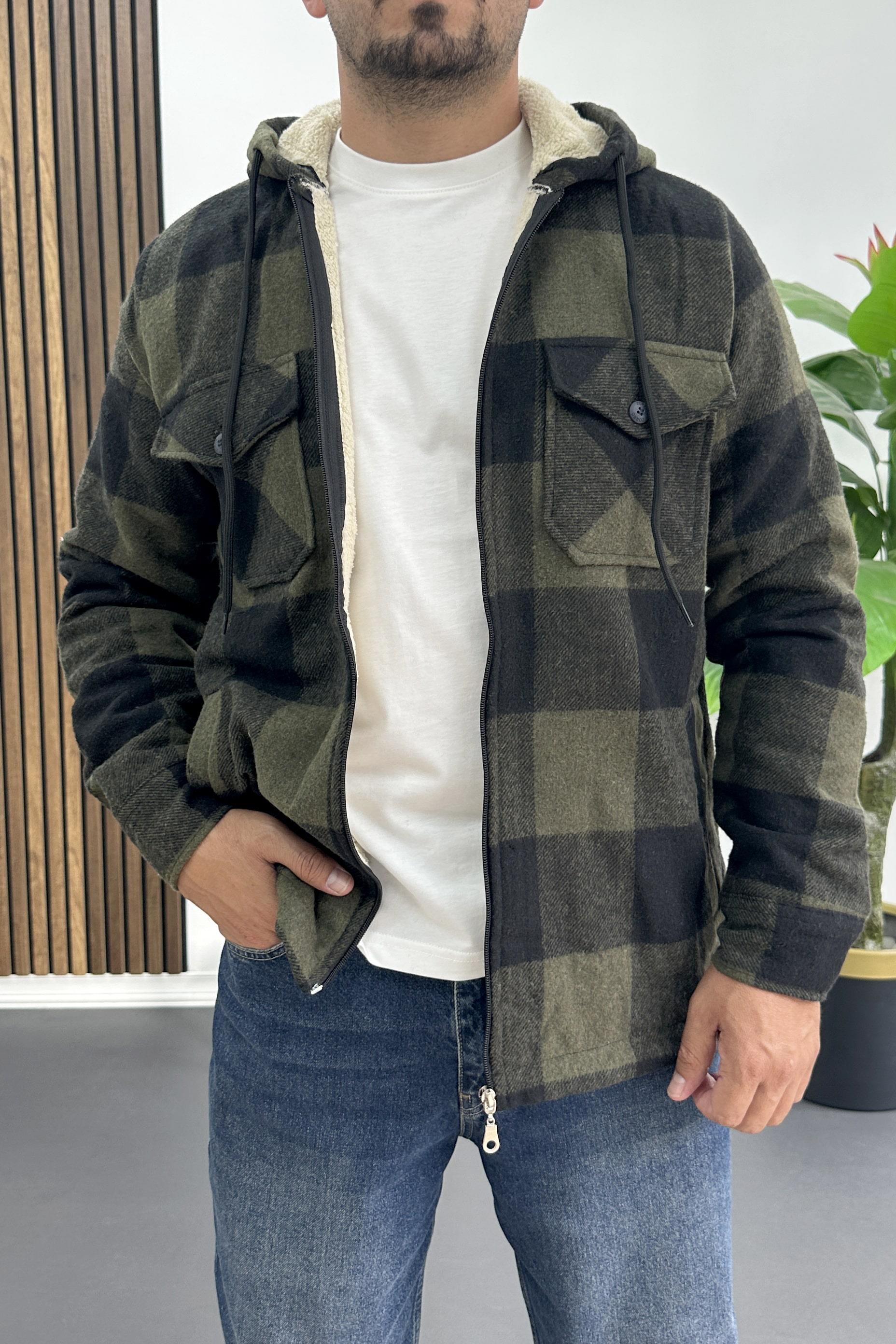 Erkek İçi Kürklü Kapüşonlu Ceket Yeşil Edw418