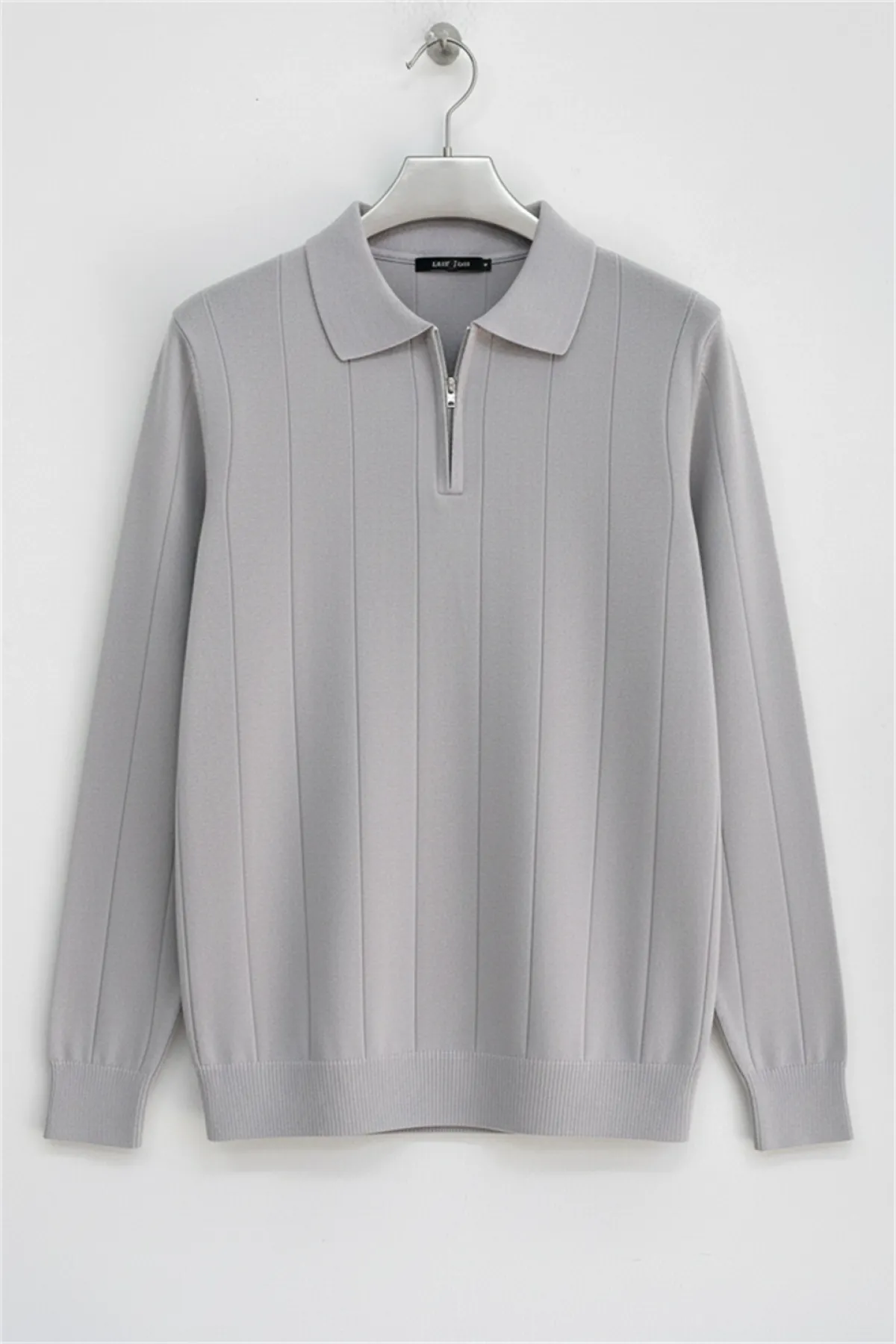 Erkek Normal Kalıp Fermuarlı Kazak Gri Edw01