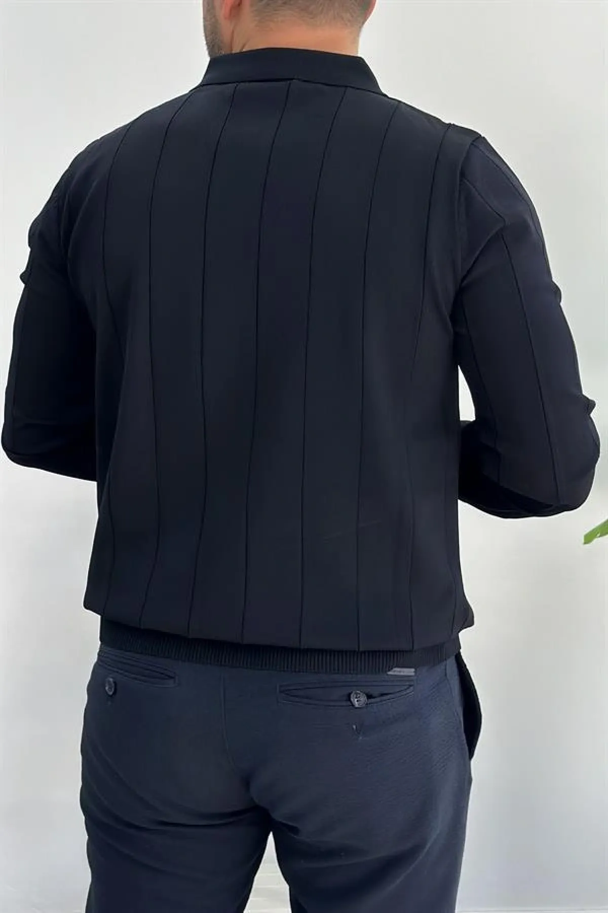 Erkek Yarım Fermuarlı Polo Yaka Mevsimlik Kazak Lacivert Edw195
