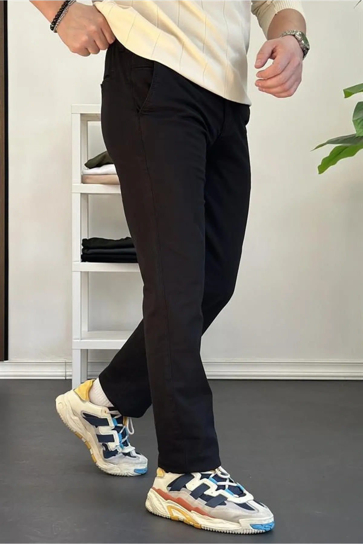 Erkek Pamuklu Chino Pantolon Standart Kalıp Siyah Edw225