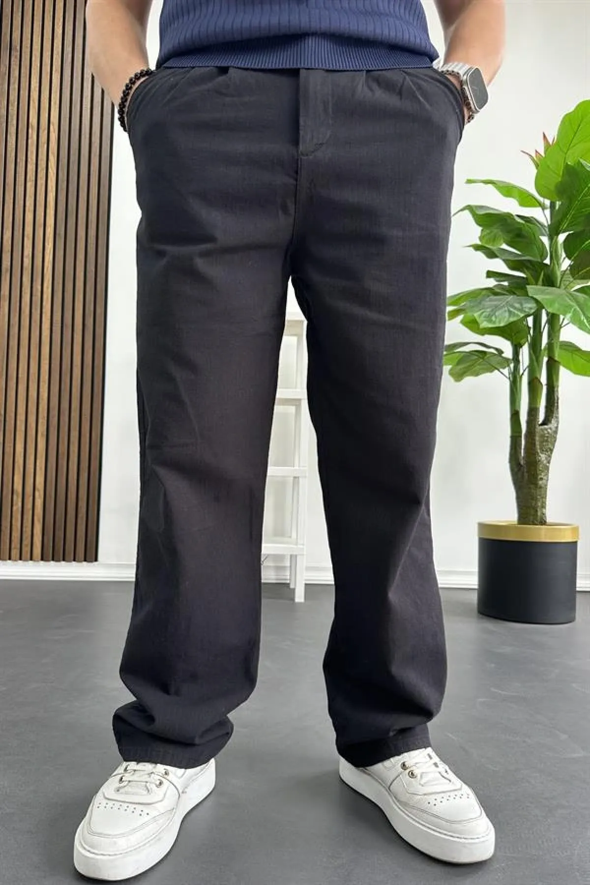 Erkek Rahat Kalıp Keten Pantolon Siyah Edw266