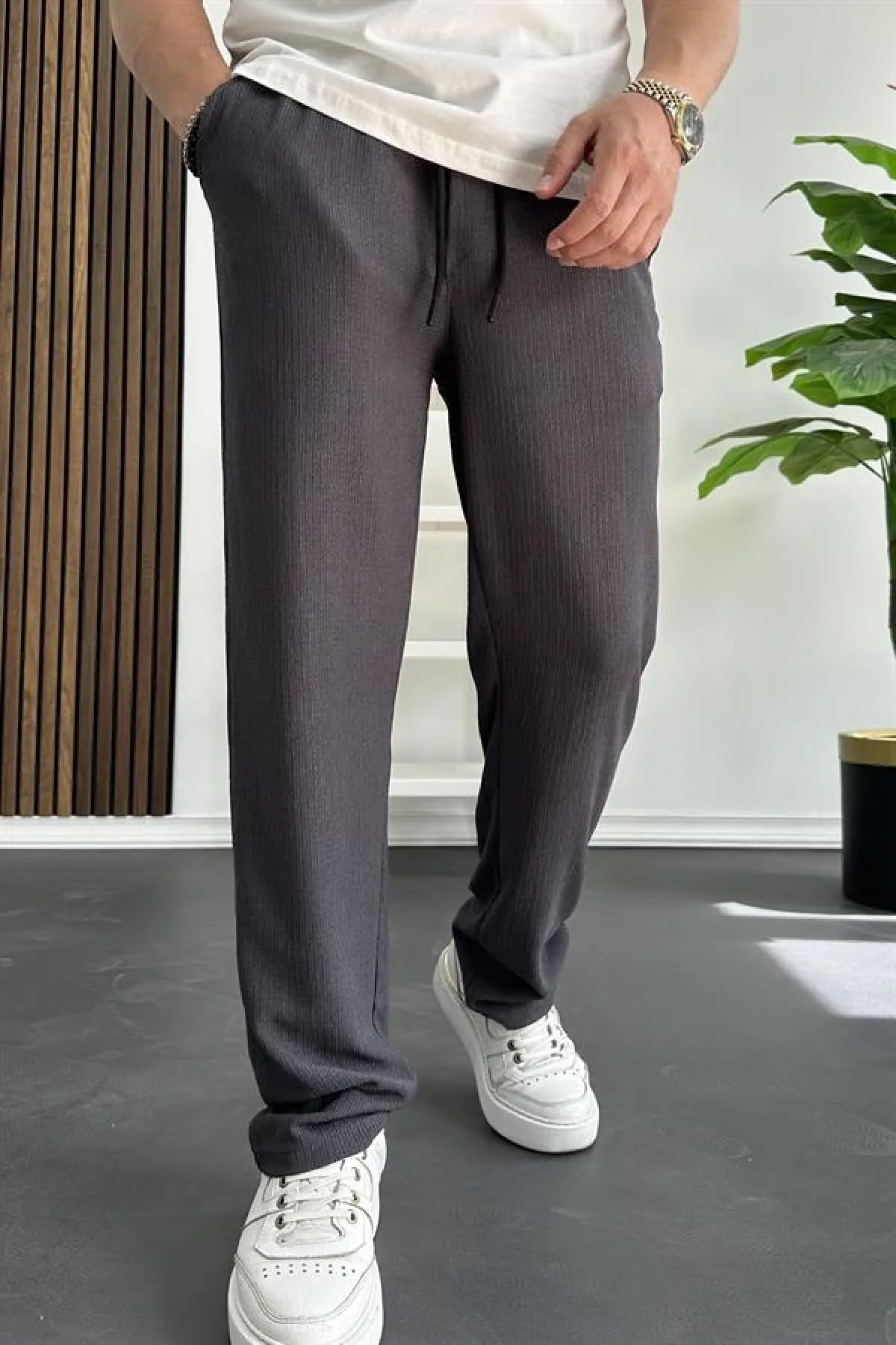 Erkek Beli Lastikli Jogger Pantolon Füme Edw394