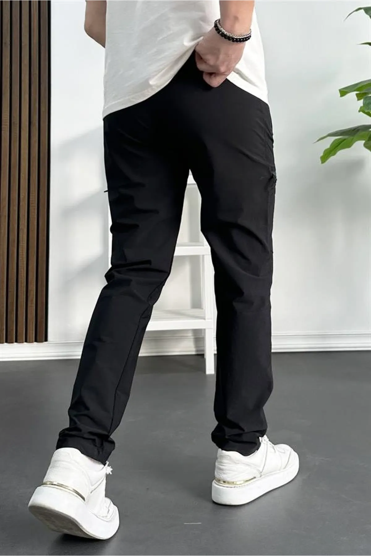 Erkek Paçası Lastikli Kargo Cepli Pantolon Siyah Edw353
