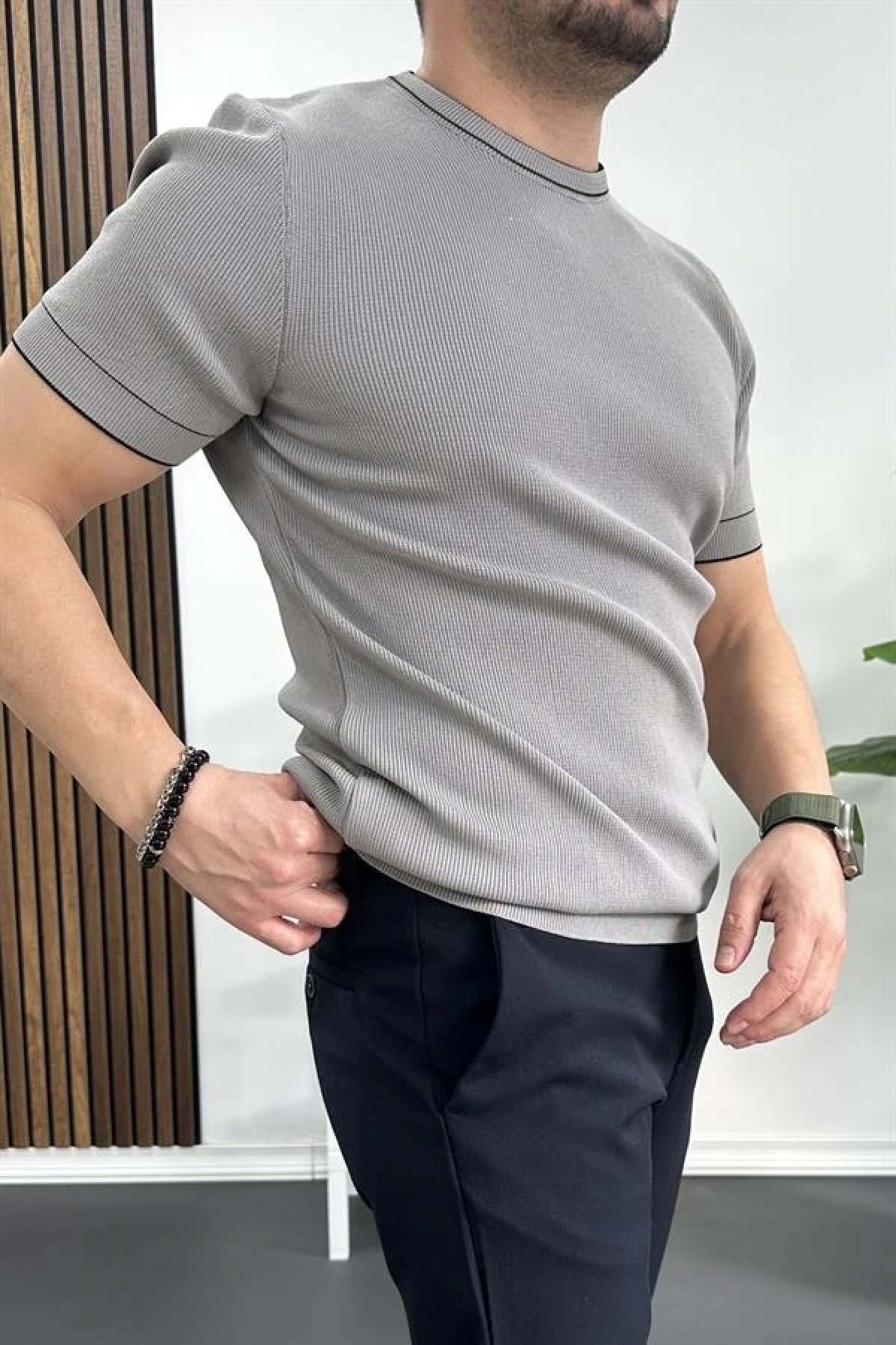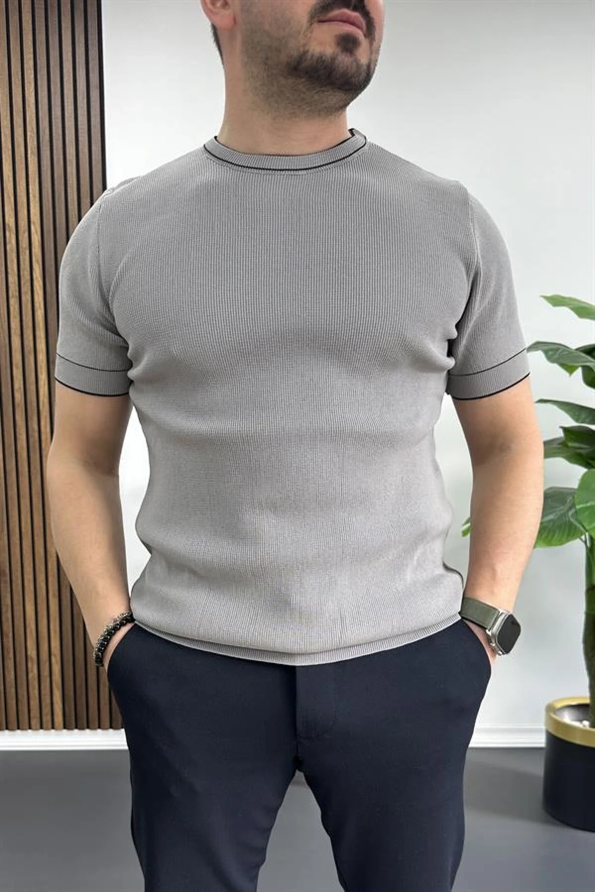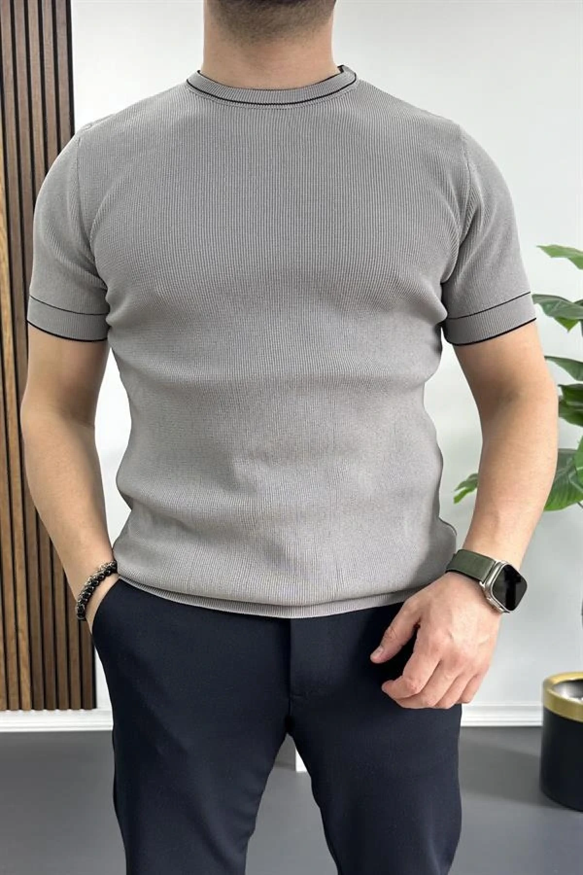 Erkek Bisiklet Yaka Triko Tişört Gri Edw233