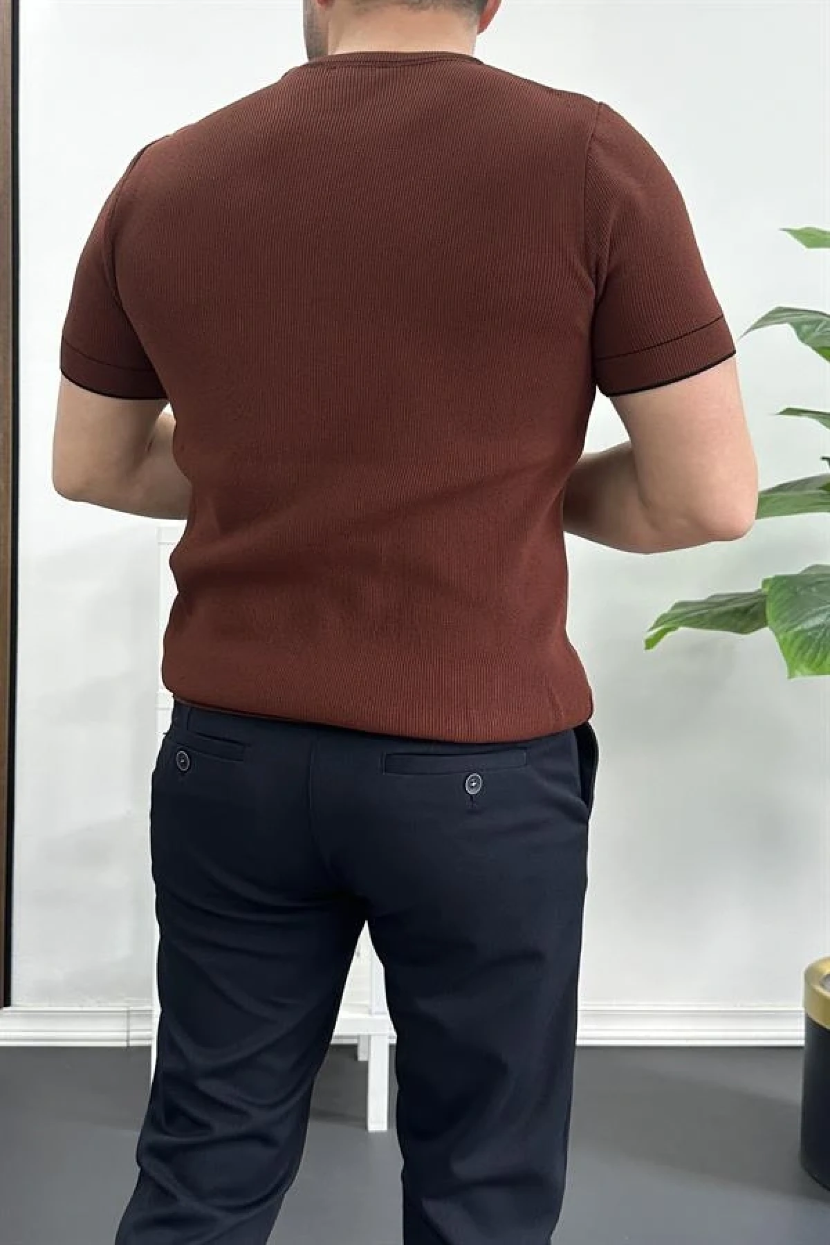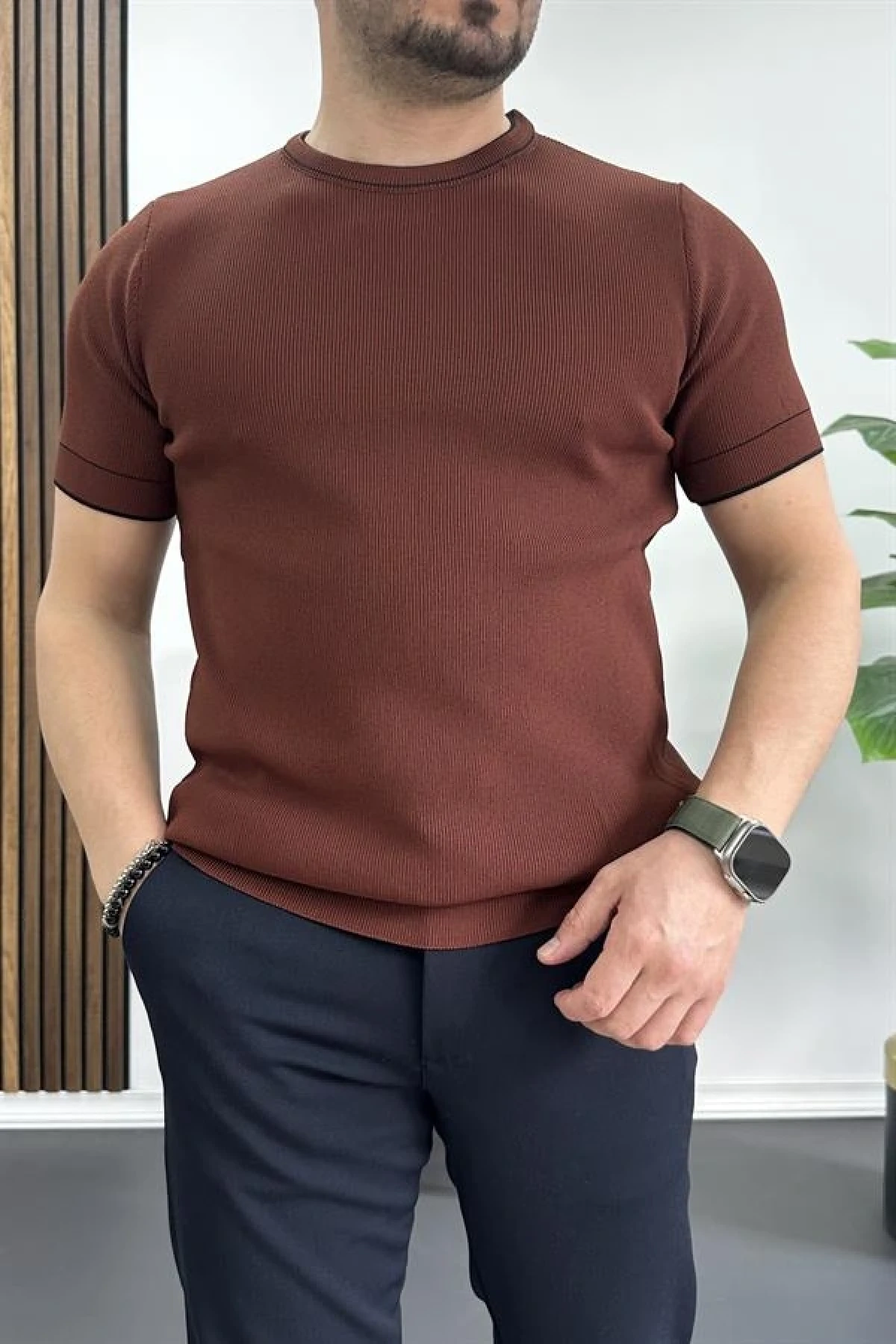 Erkek Bisiklet Yaka Triko Tişört Kiremit Edw233