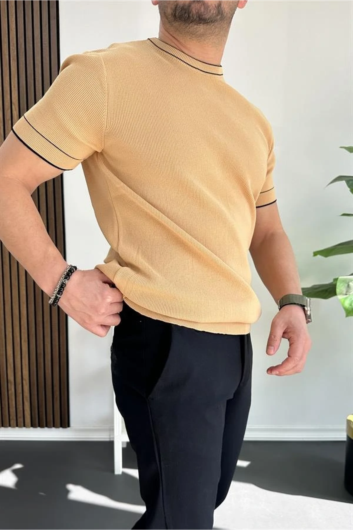 Erkek Bisiklet Yaka Triko Tişört Sarı Edw233