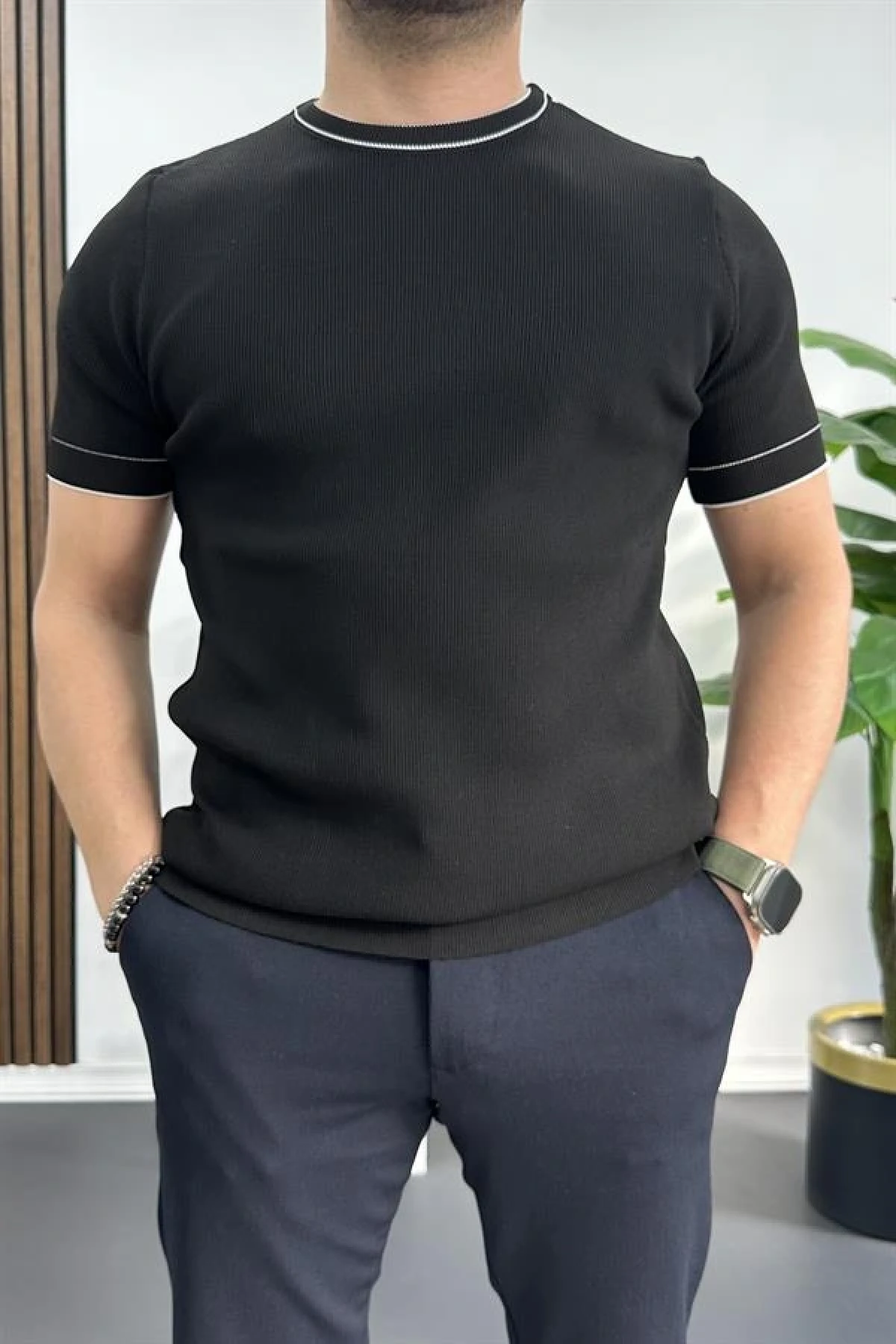Erkek Bisiklet Yaka Triko Tişört Siyah Edw233