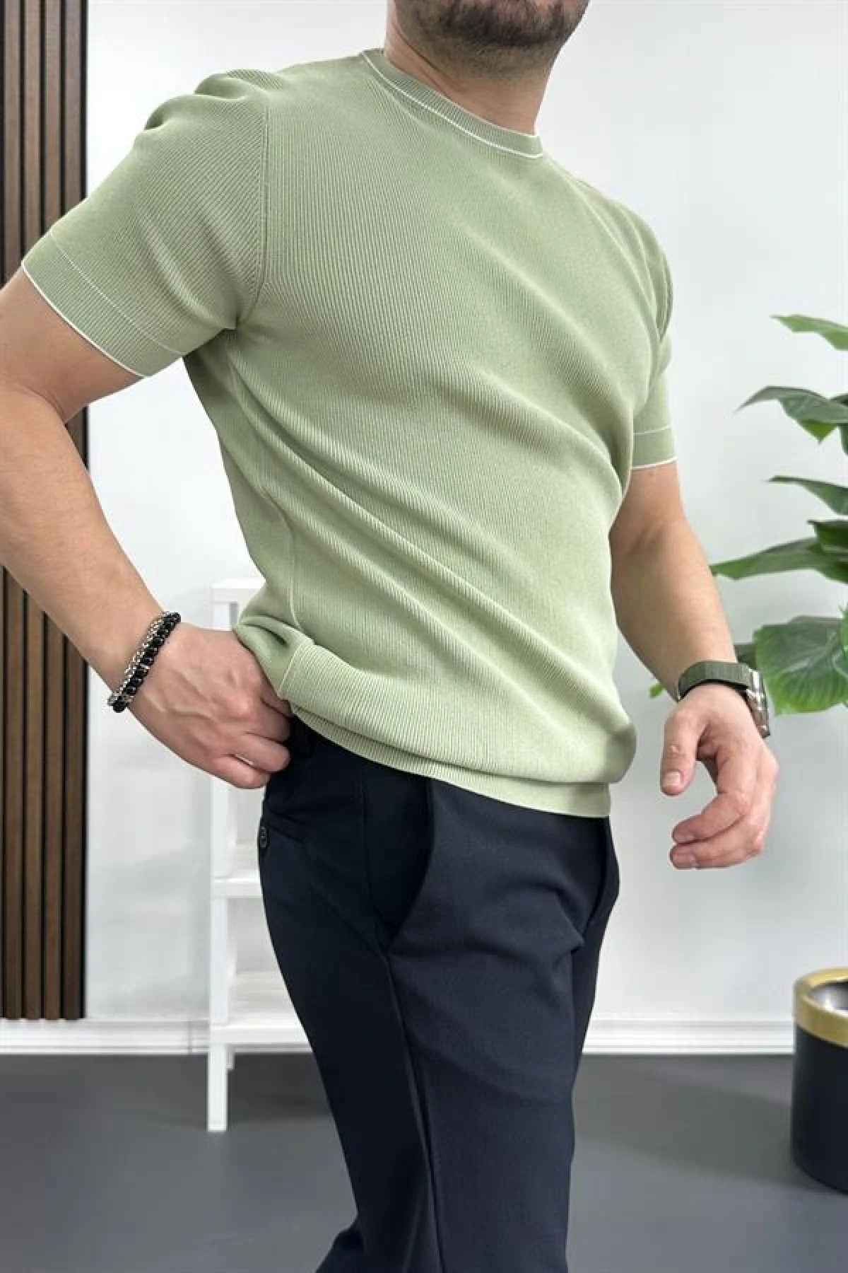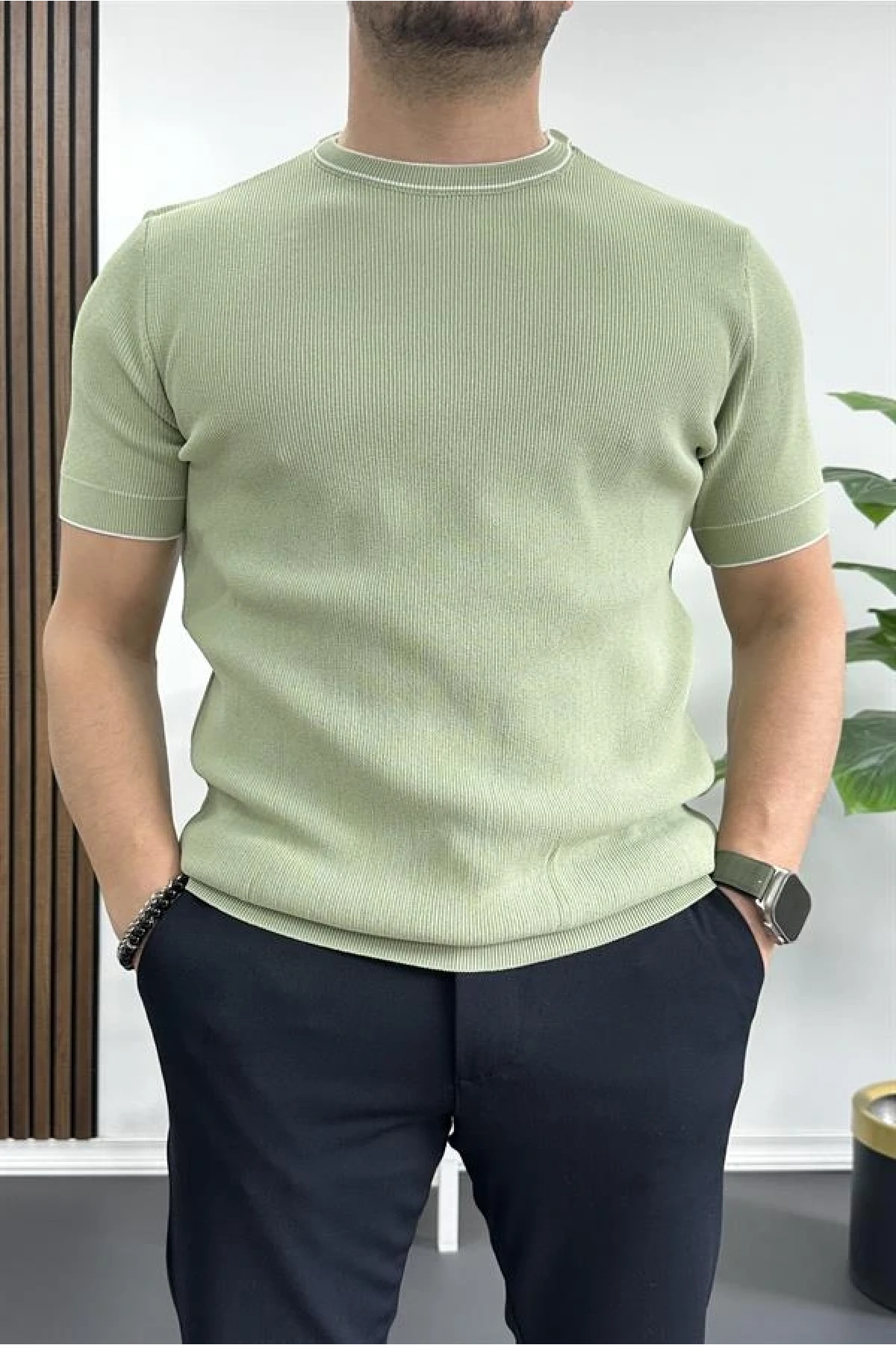 Erkek Bisiklet Yaka Triko Tişört Yeşil Edw233