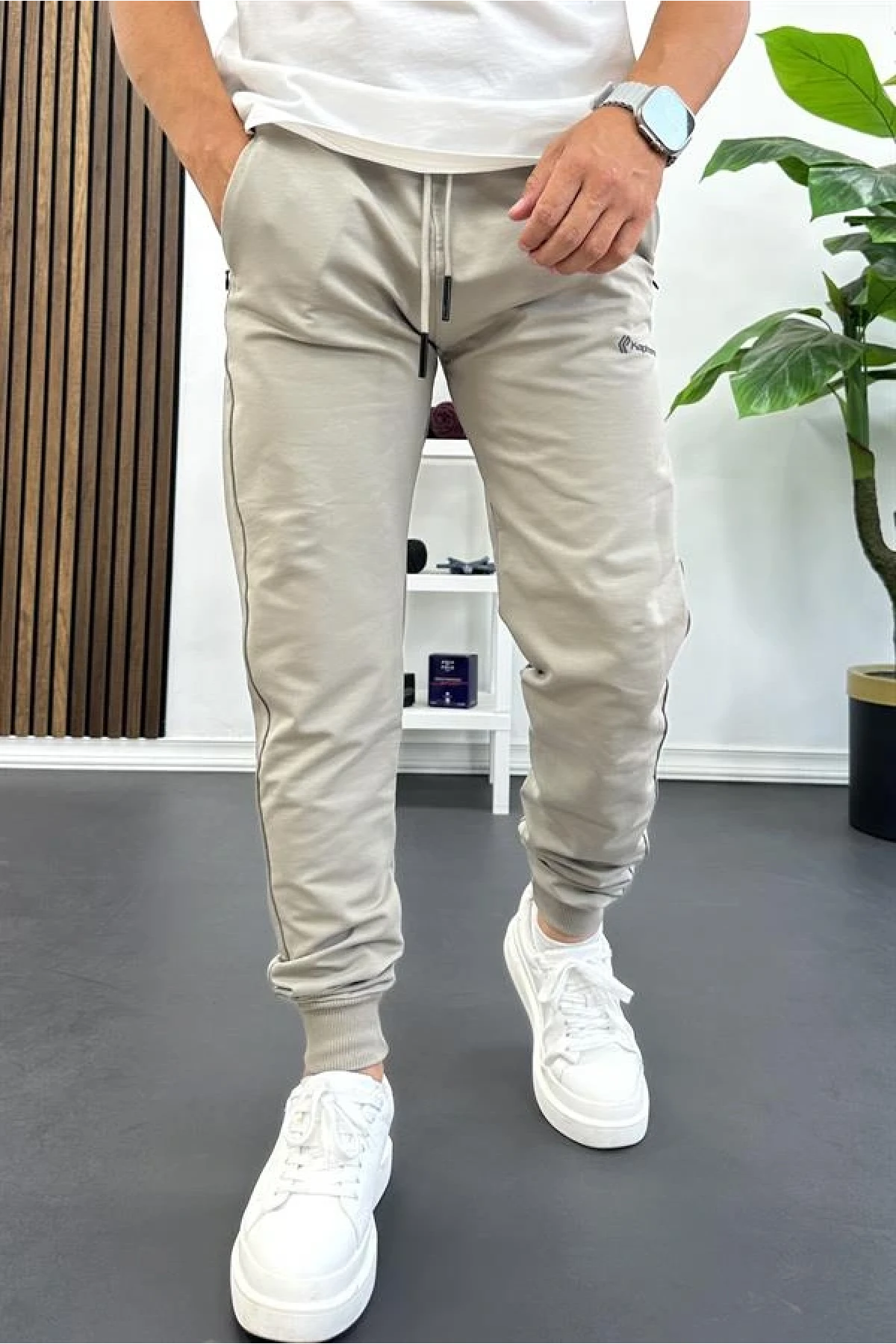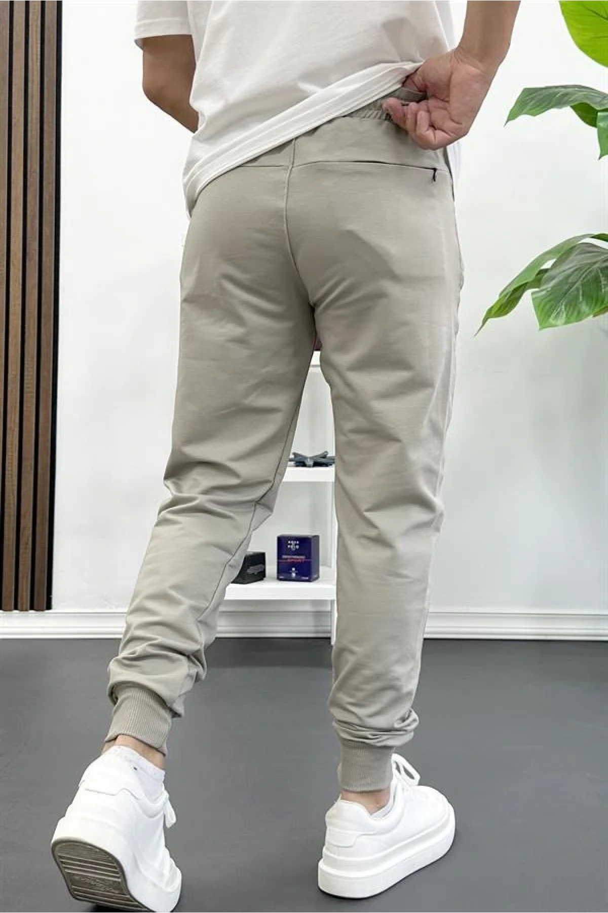 Erkek Regular Fit Dar Paça Lastik Paça Eşofman Altı Bej Edw406
