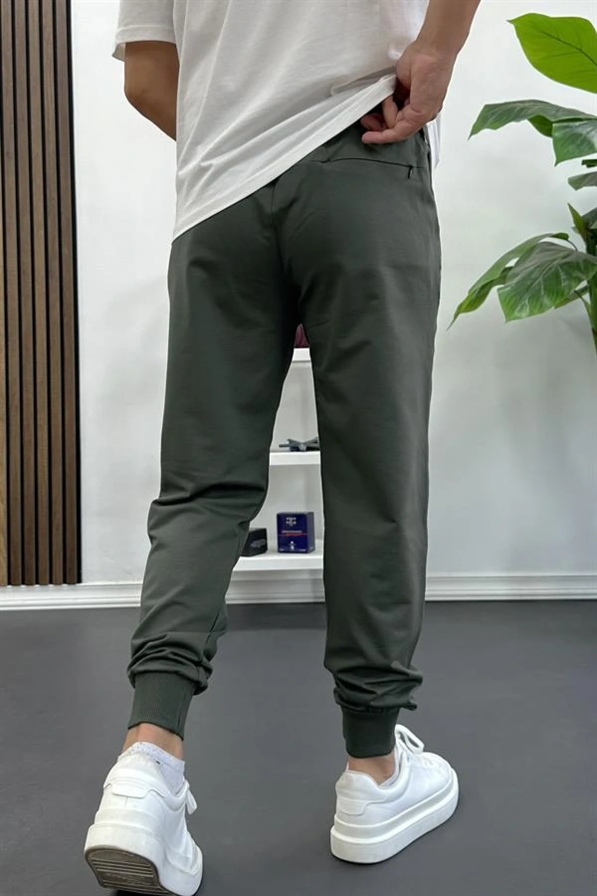 Erkek Regular Fit Dar Paça Lastik Paça Eşofman Altı Füme Edw406