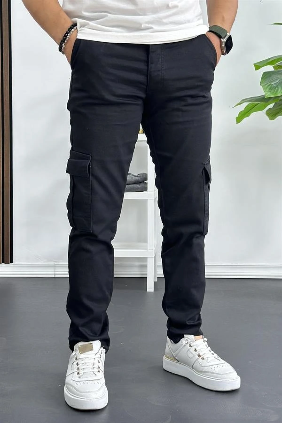 Erkek Yan Cepli Kargo Pantolon Siyah Edw400