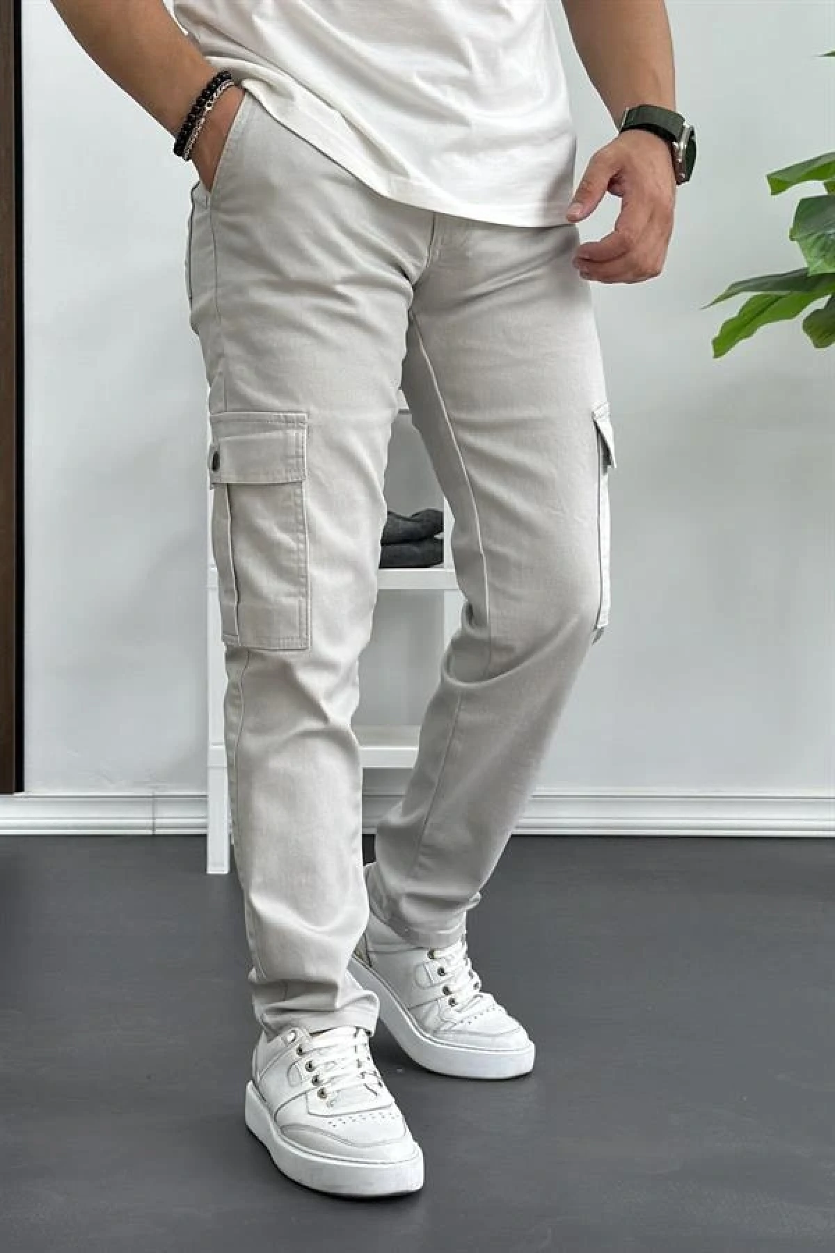 Erkek Yan Cepli Kargo Pantolon Taş Edw400