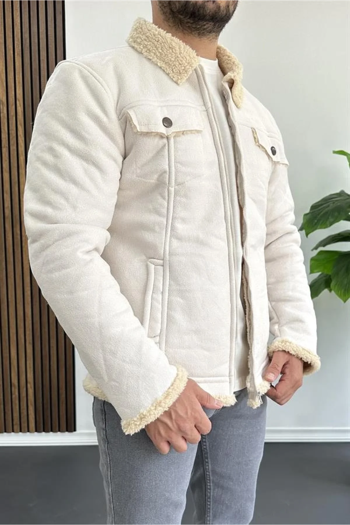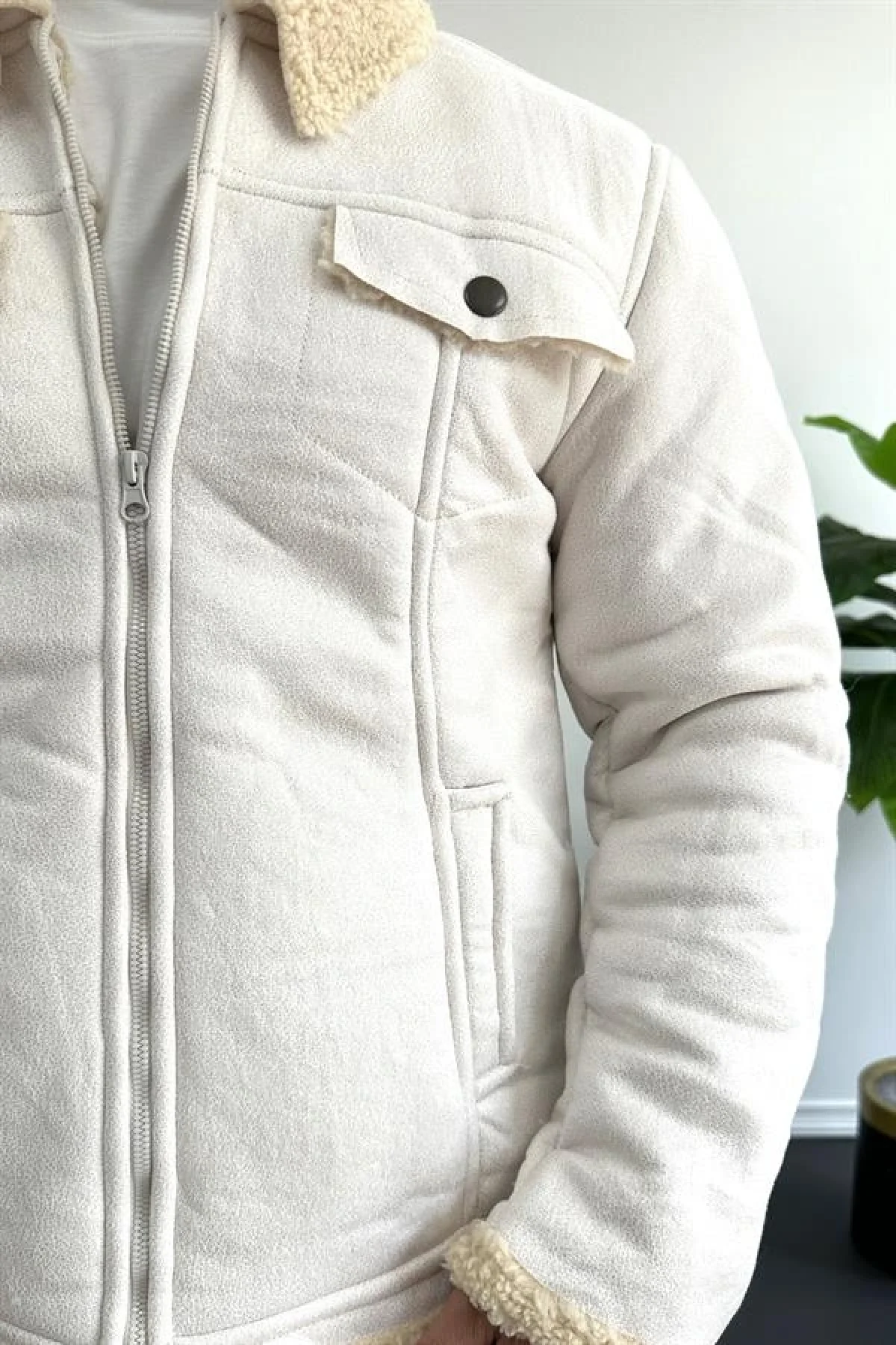 Erkek İçi Kürklü Suni Pul Deri Mont Beyaz Edw120