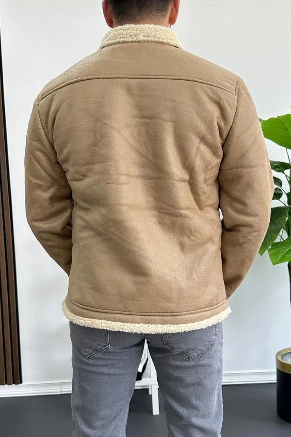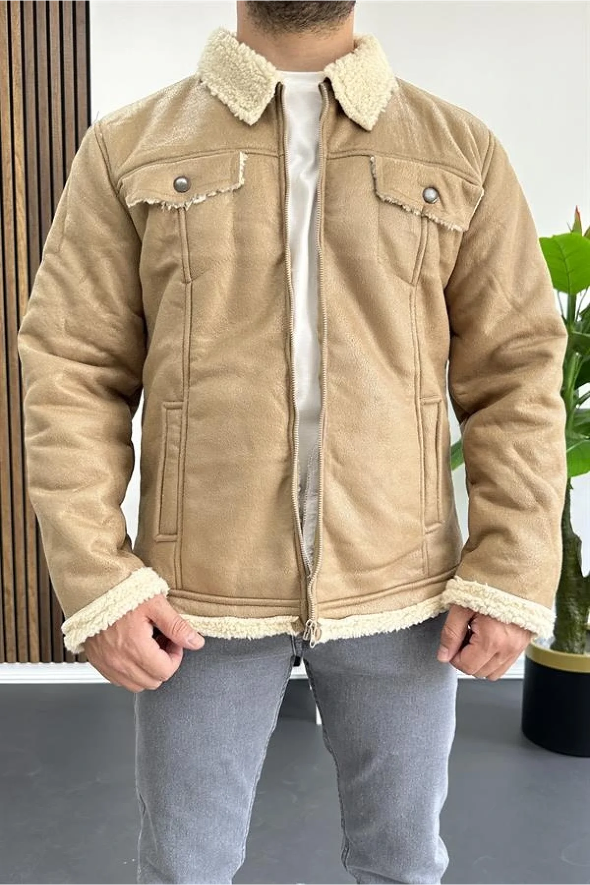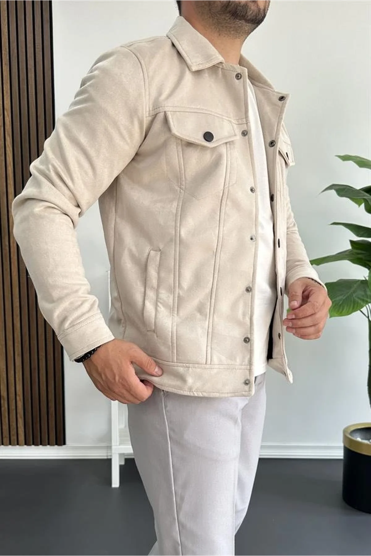 Erkek Slim Fit Cepli Nubuk Ceket Krem Edw081