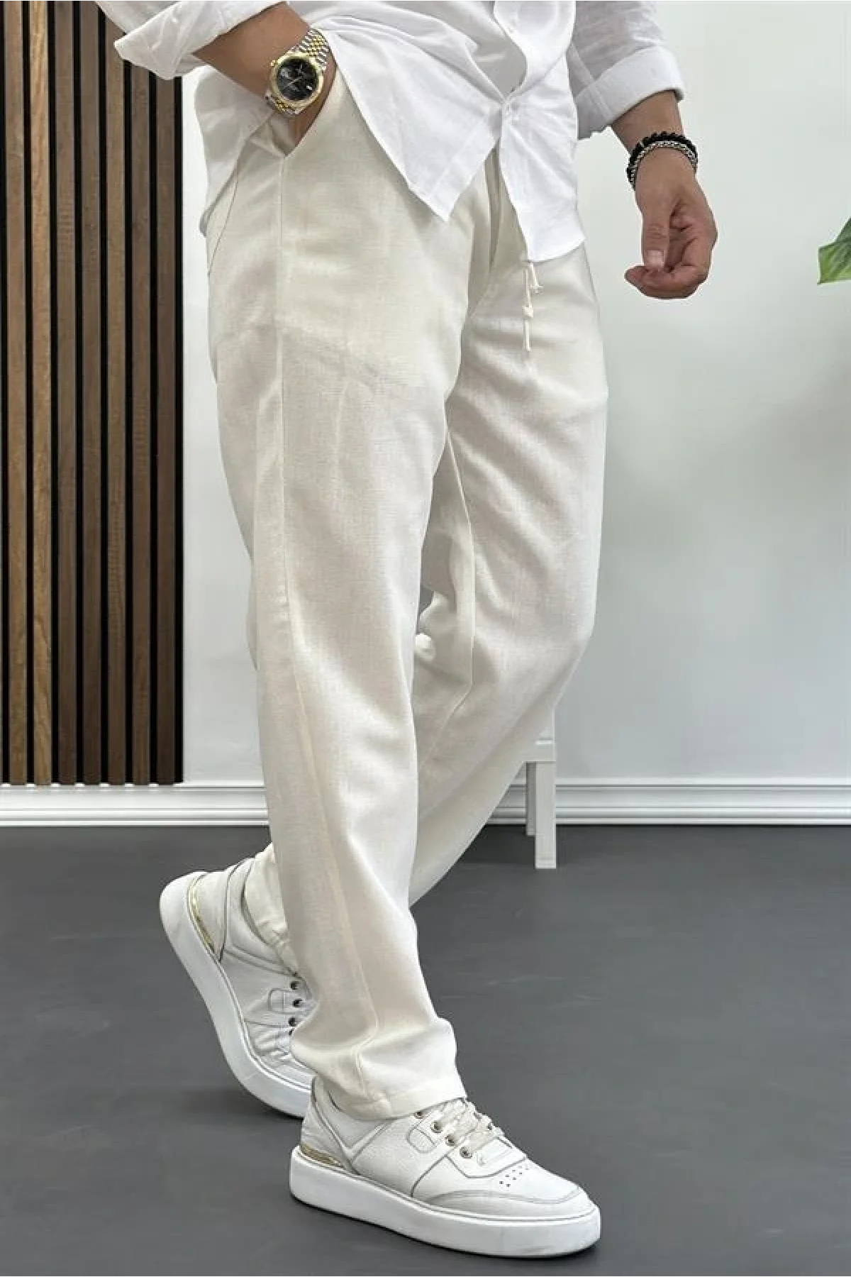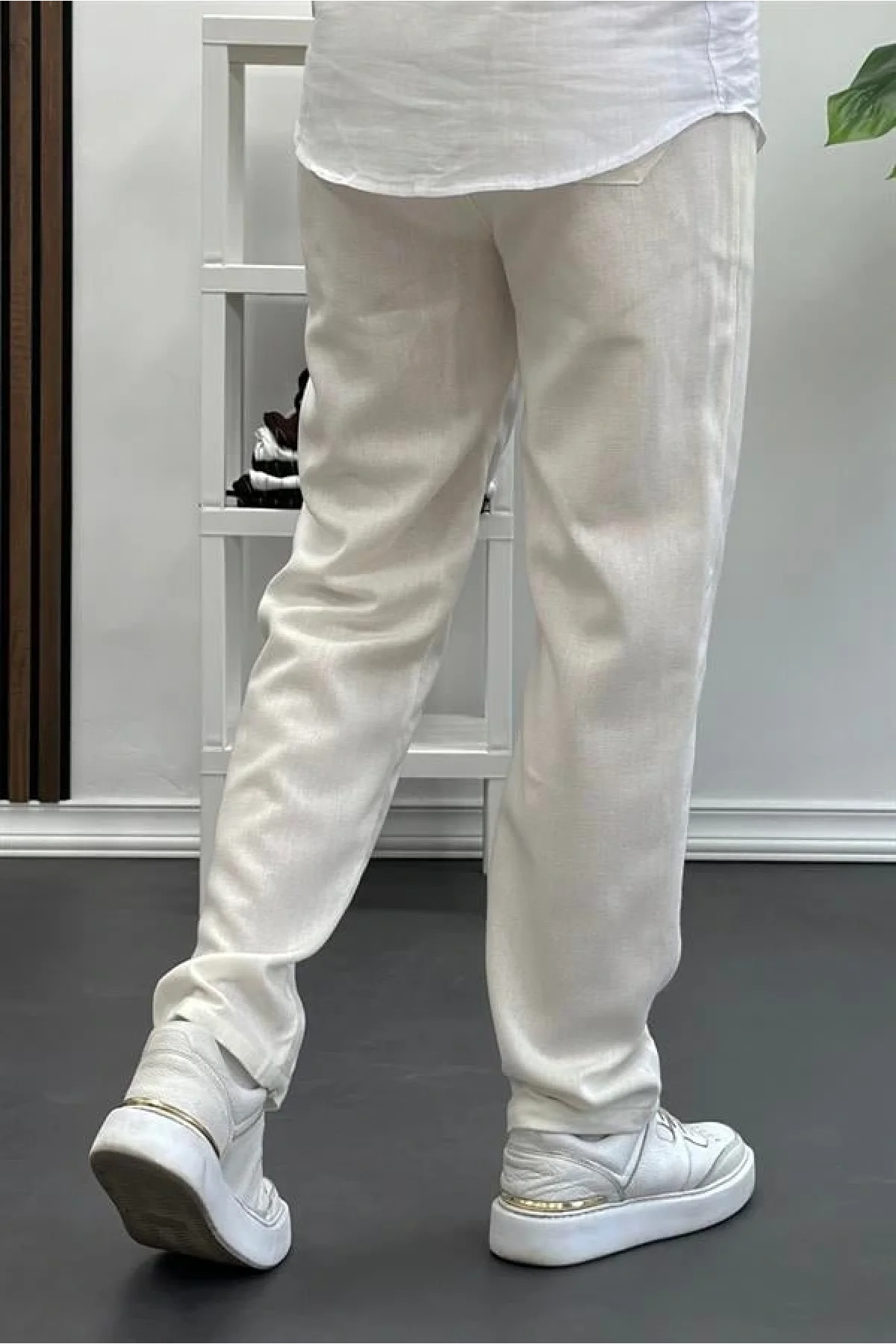 Erkek Rahat Kesim Keten Pantolon Beyaz Edw138