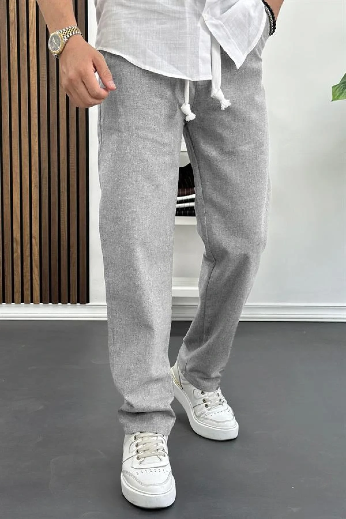 Erkek Rahat Kesim Keten Pantolon Gri Edw138