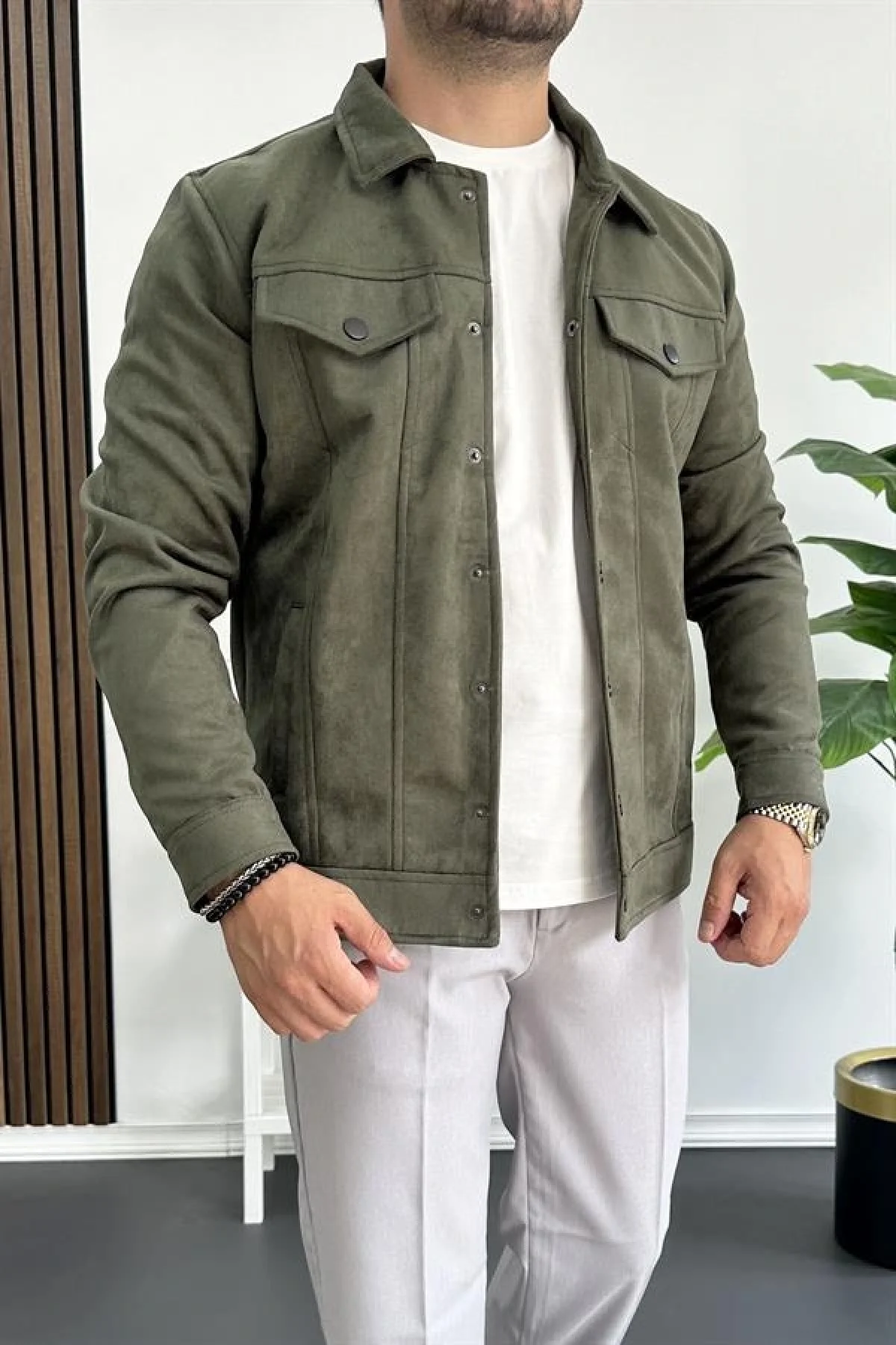 Erkek Slim Fit Cepli Nubuk Ceket Yeşil Edw081