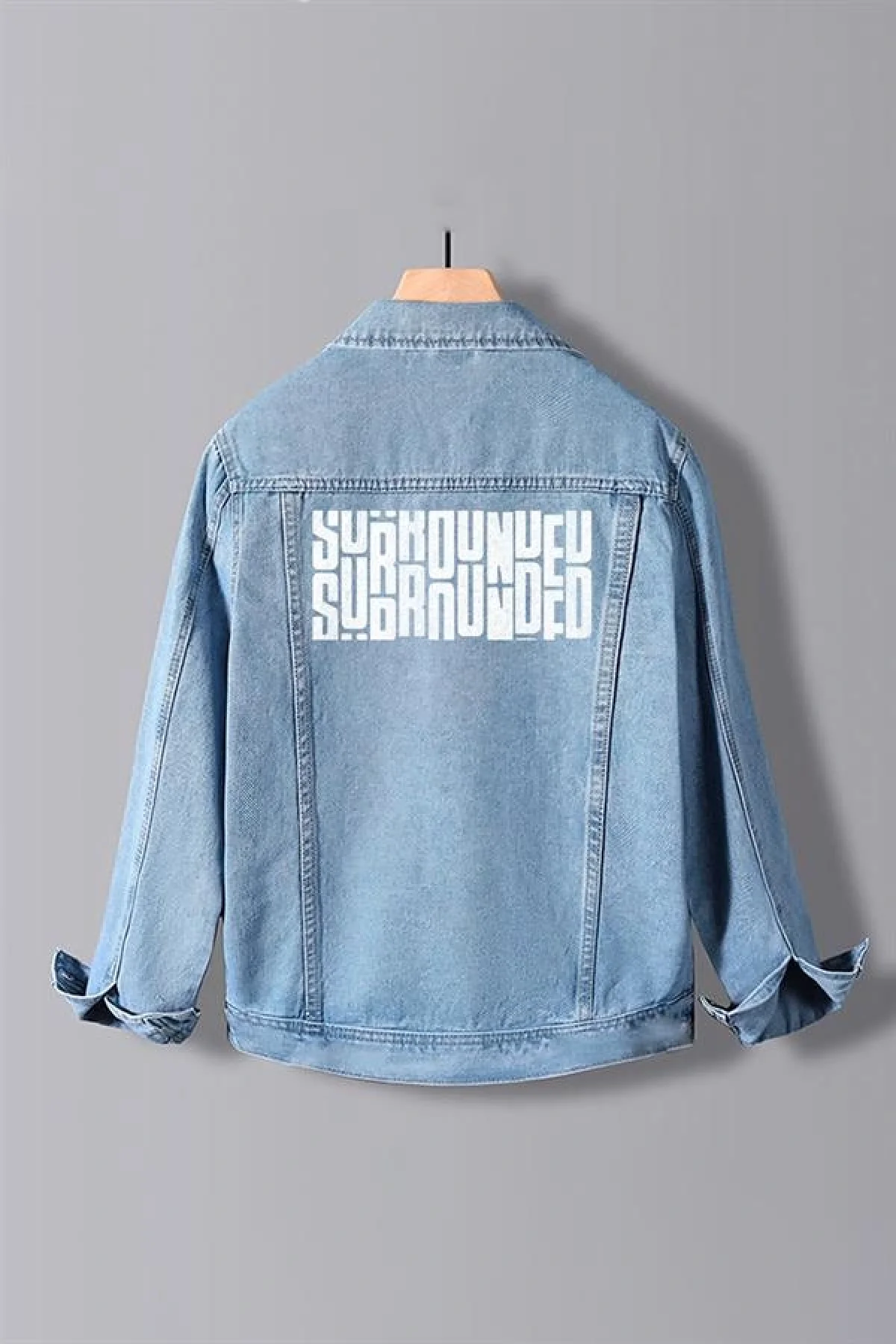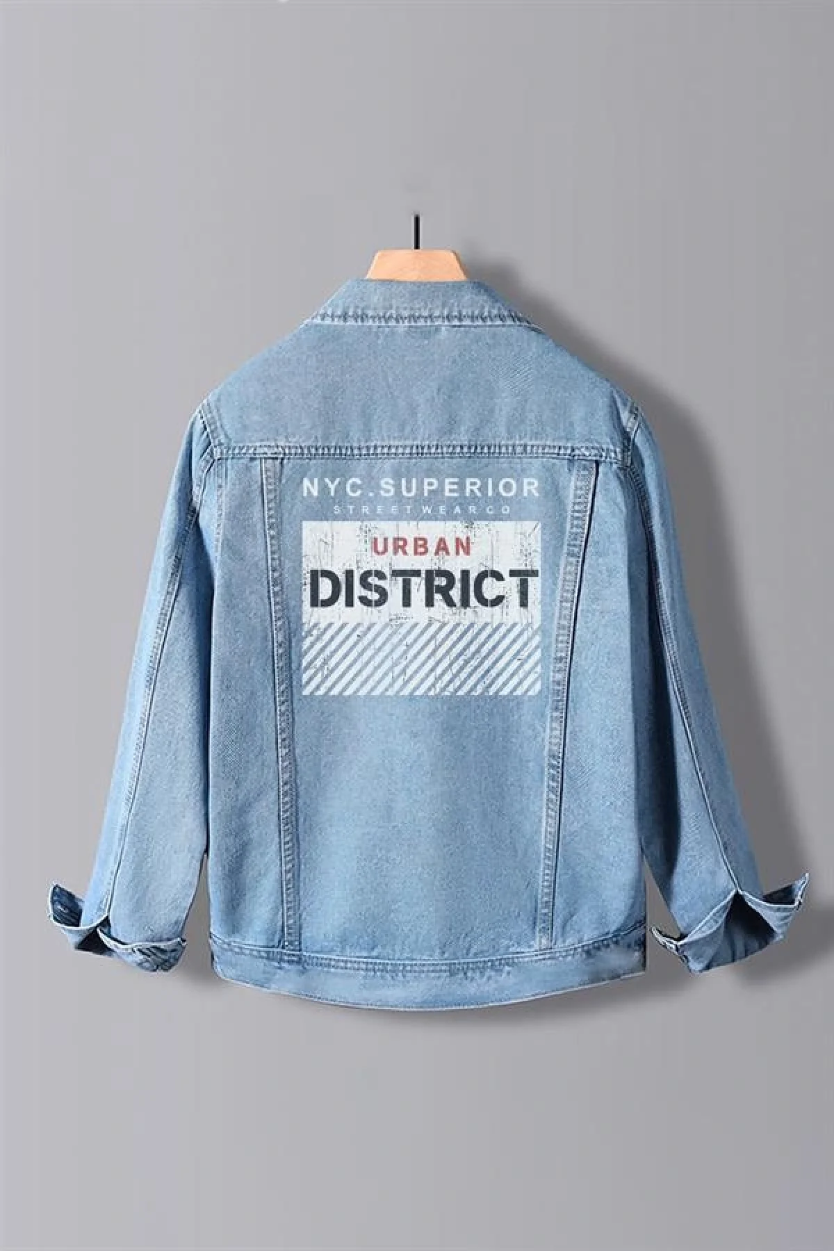 Erkek Slim Fit Sırt Baskılı Denim Kot Ceket Açık Mavi Edw129