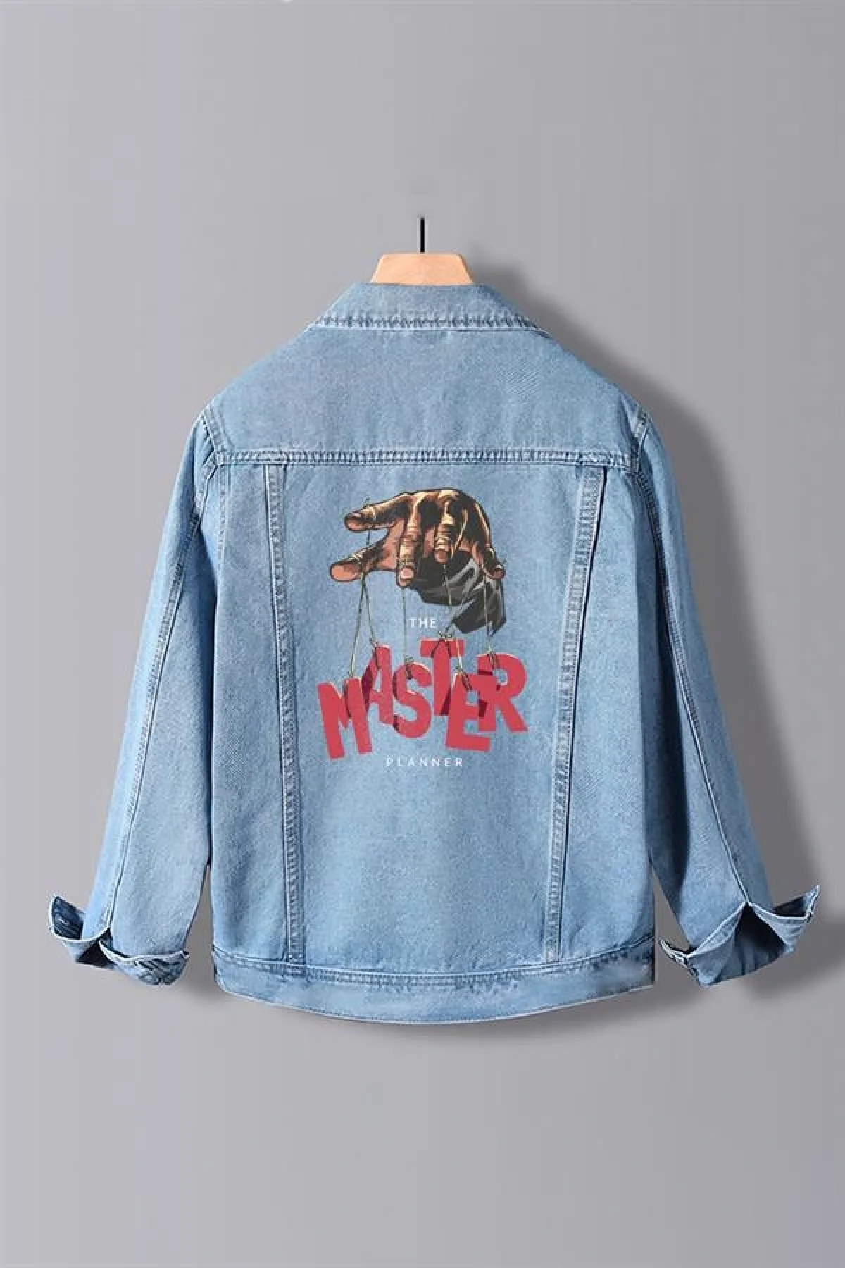 Erkek Slim Fit Sırt Baskılı Denim Kot Ceket Açık Mavi Edw128