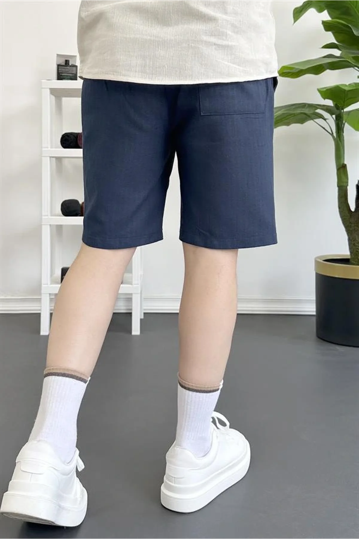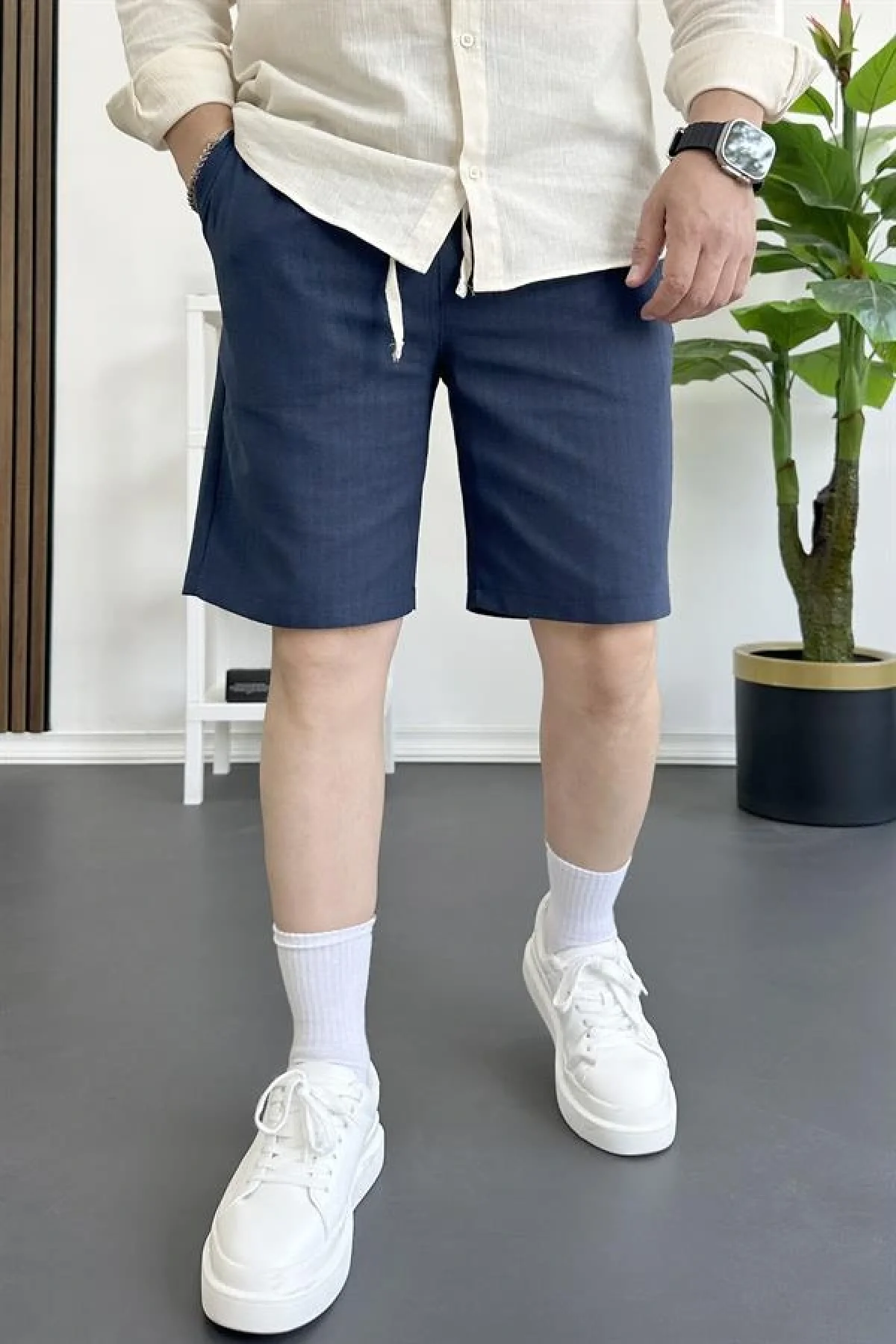 Erkek Beli Lastikli Keten Kumaş Şort Lacivert Edw370