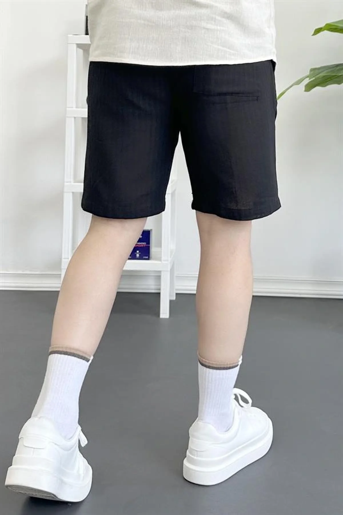 Erkek Beli Lastikli Keten Kumaş Şort Siyah Edw370