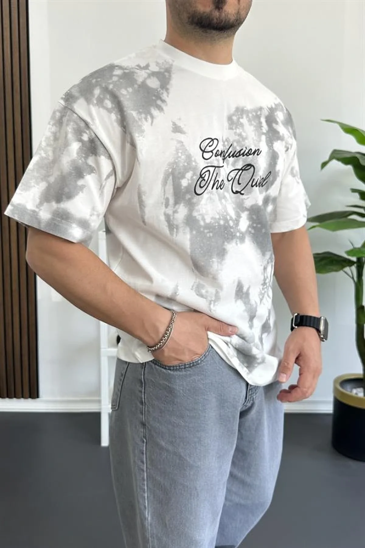 Erkek Oversize Ön ve Arka Kabartmalı Slogan Baskılı Tişört Beyaz Edw368