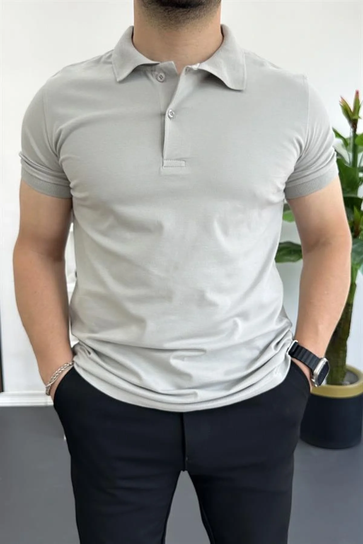 Erkek Slim Fit Düz Renk Pamuklu Soft Polo Tişört Gri Edw365