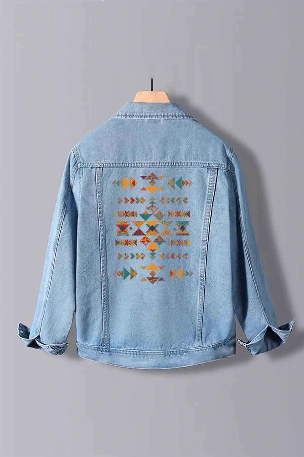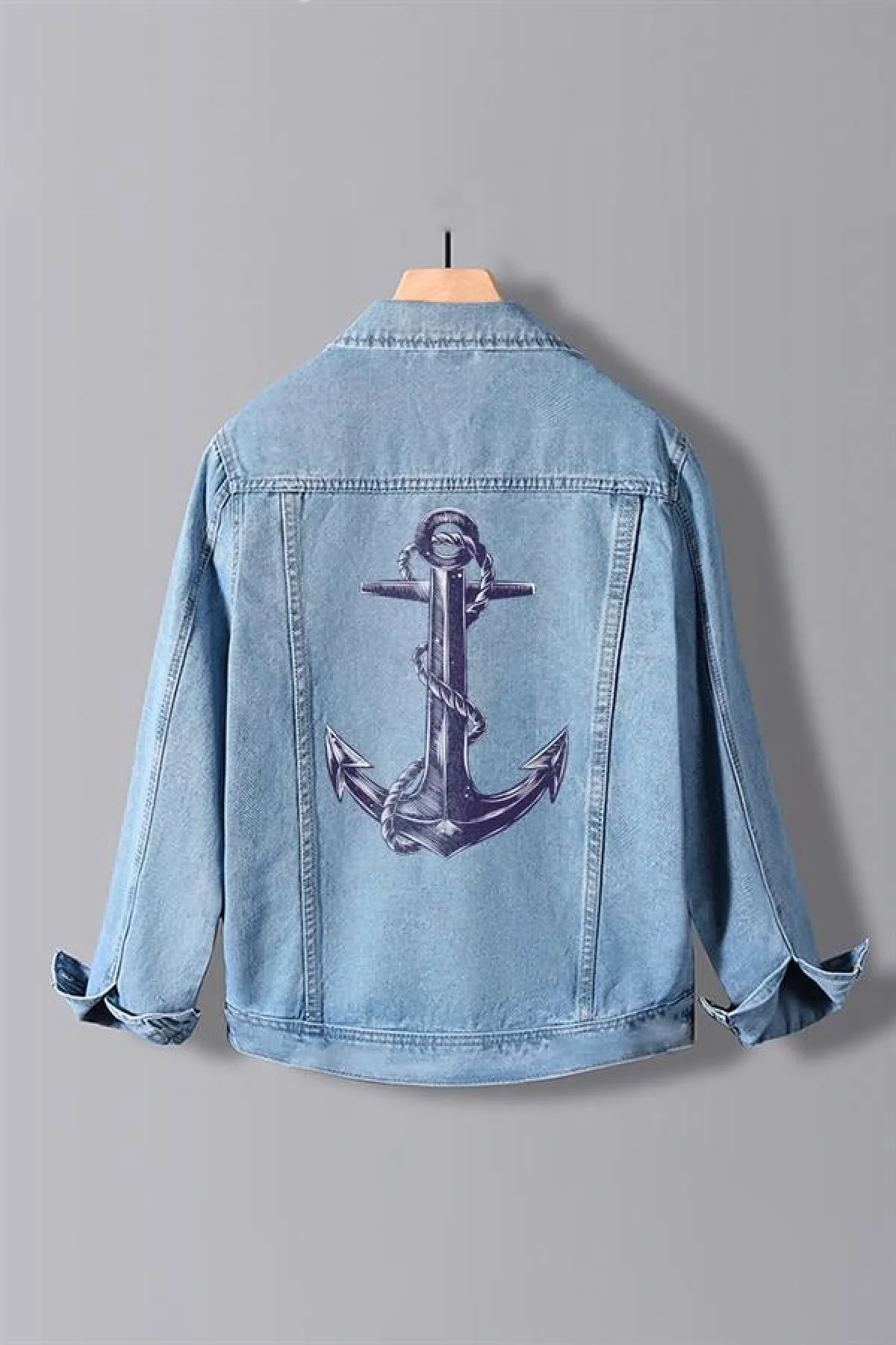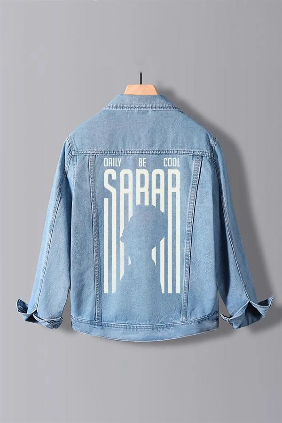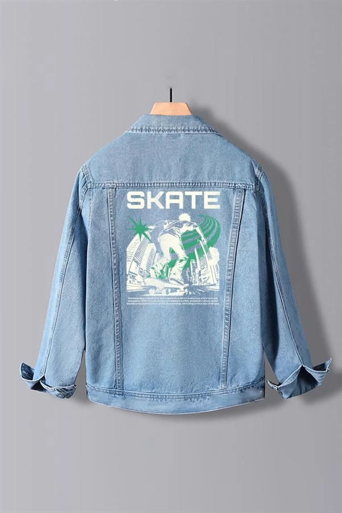 Erkek Slim Fit Sırt Baskılı Denim Kot Ceket Açık Mavi Edw382