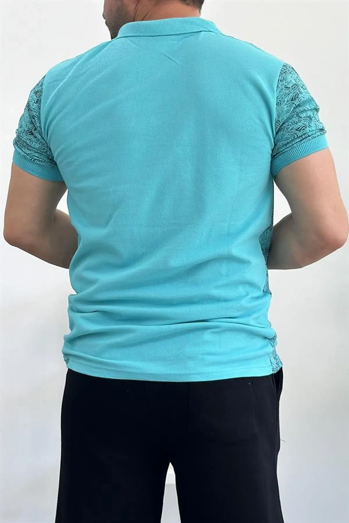 Erkek Slim Fit Desenli Polo Yaka Tişört Mavi Edw153