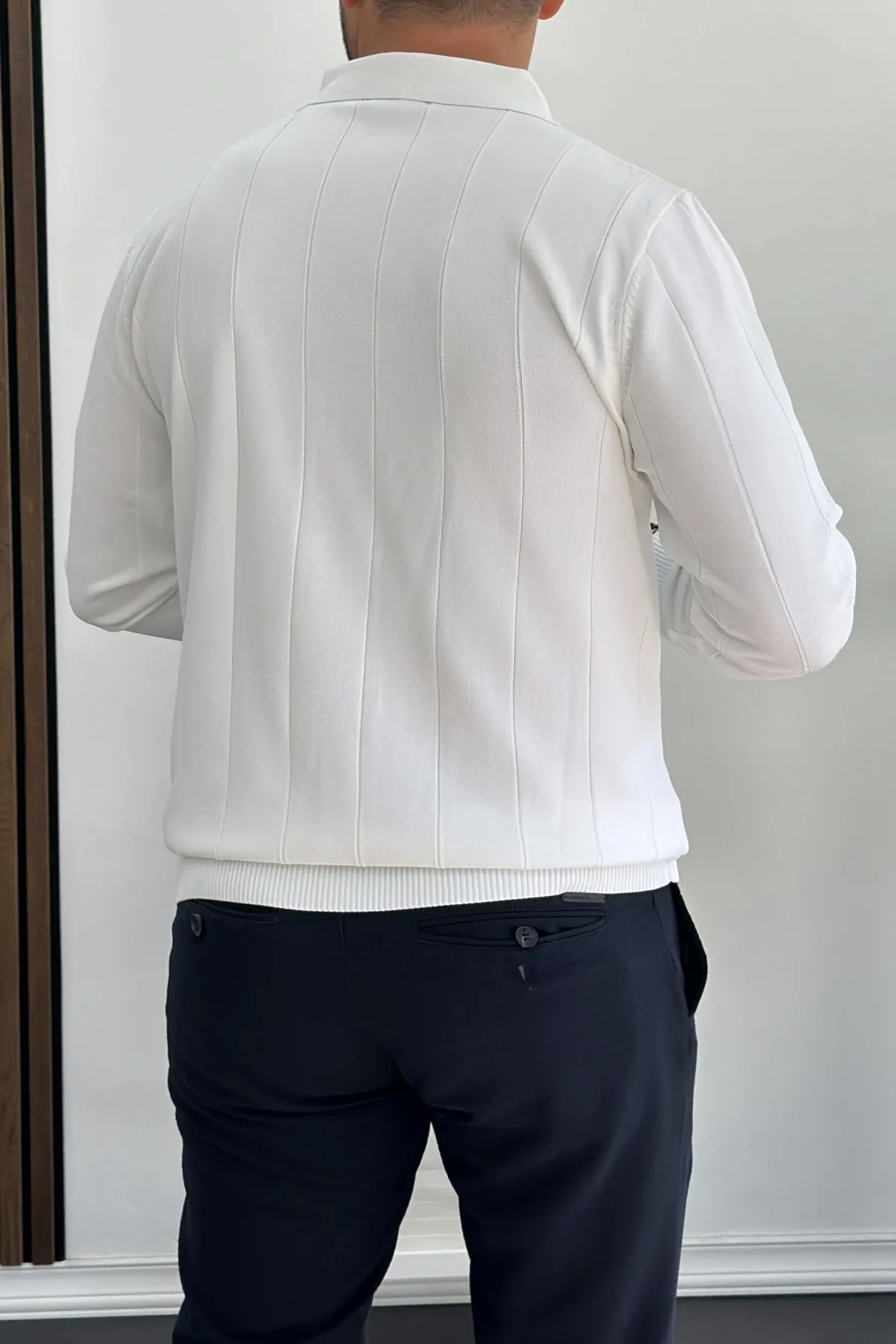 Erkek Yarım Fermuarlı Polo Yaka Mevsimlik Kazak Beyaz Edw195