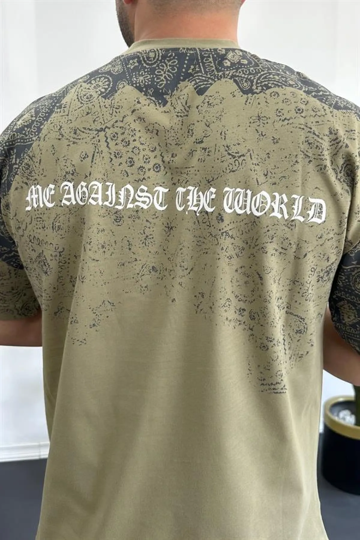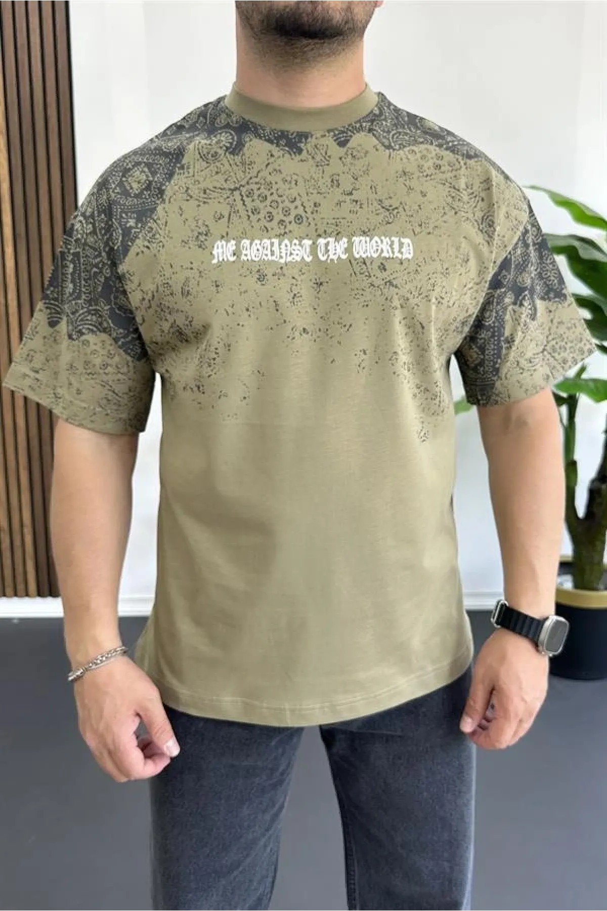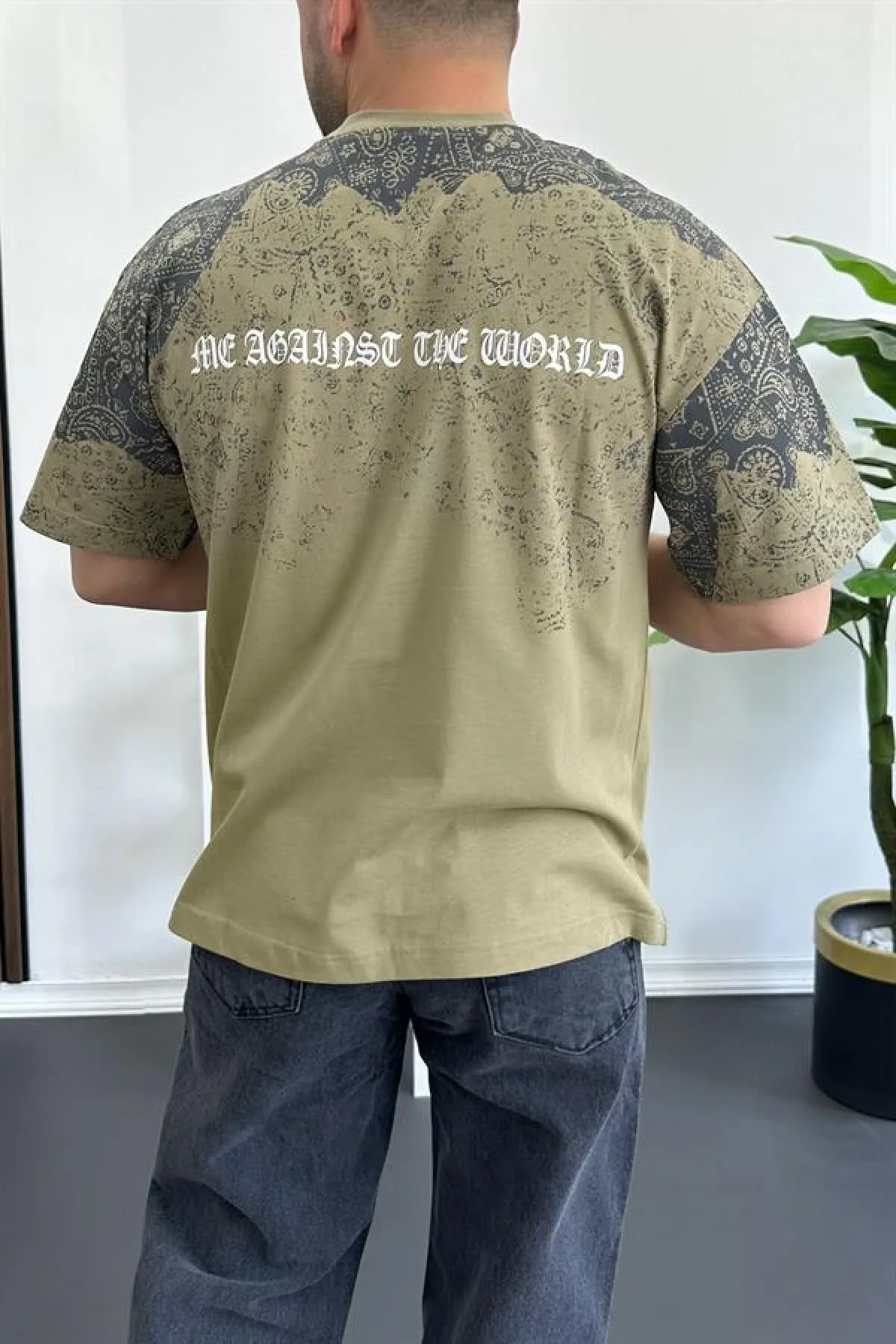 Erkek Oversize Ön ve arka baskılı Desenli Tişört Yeşil Edw369