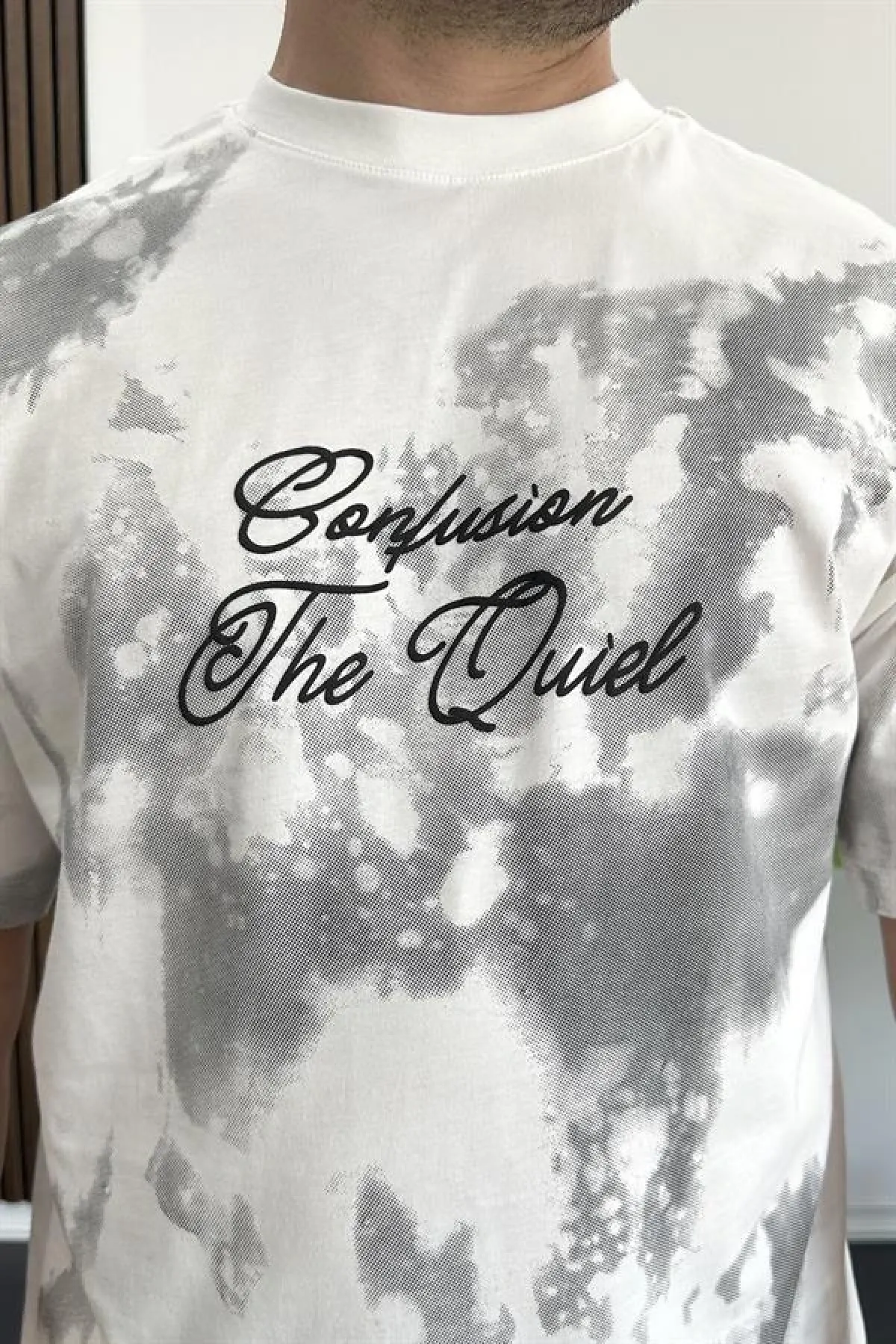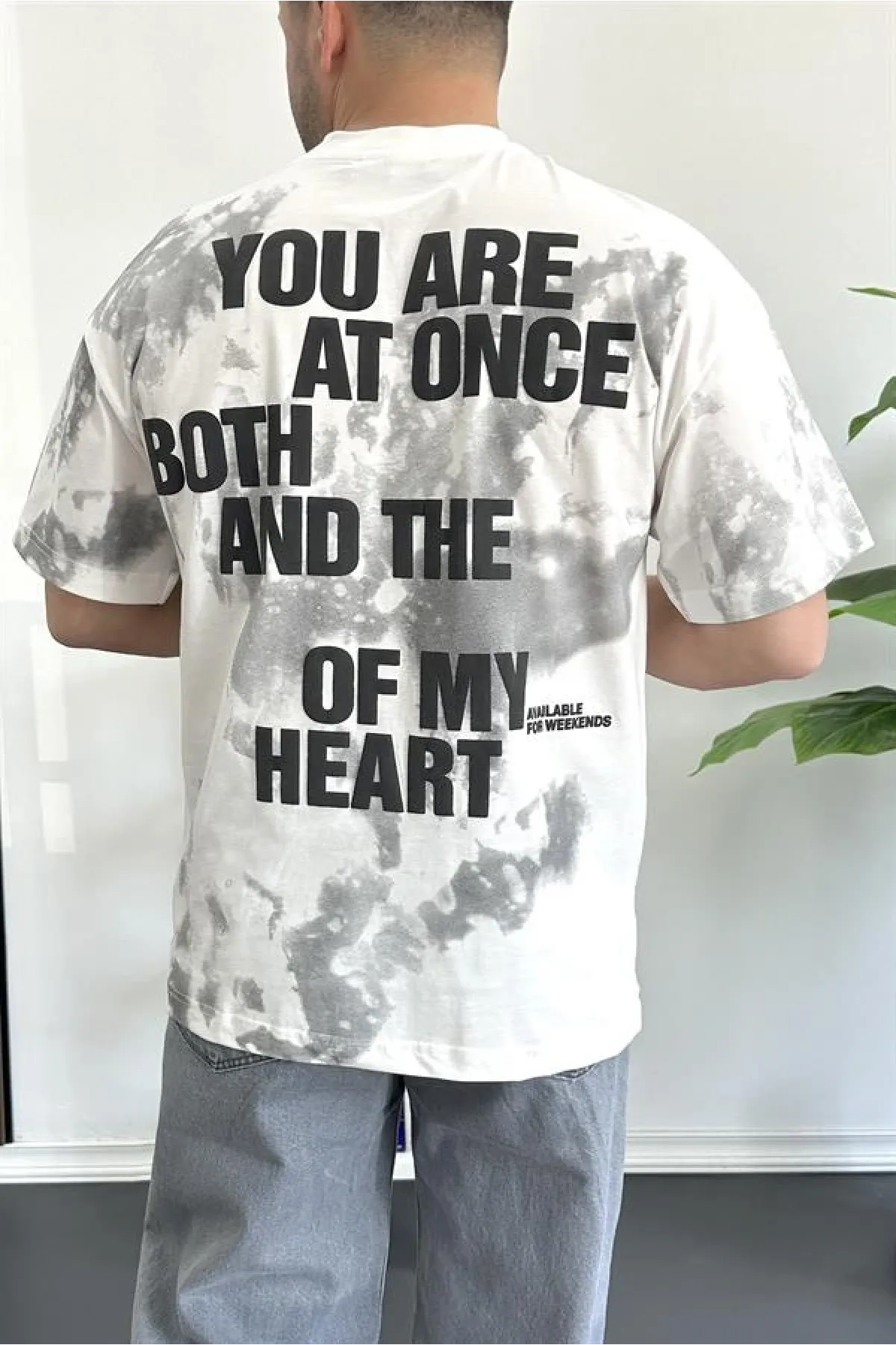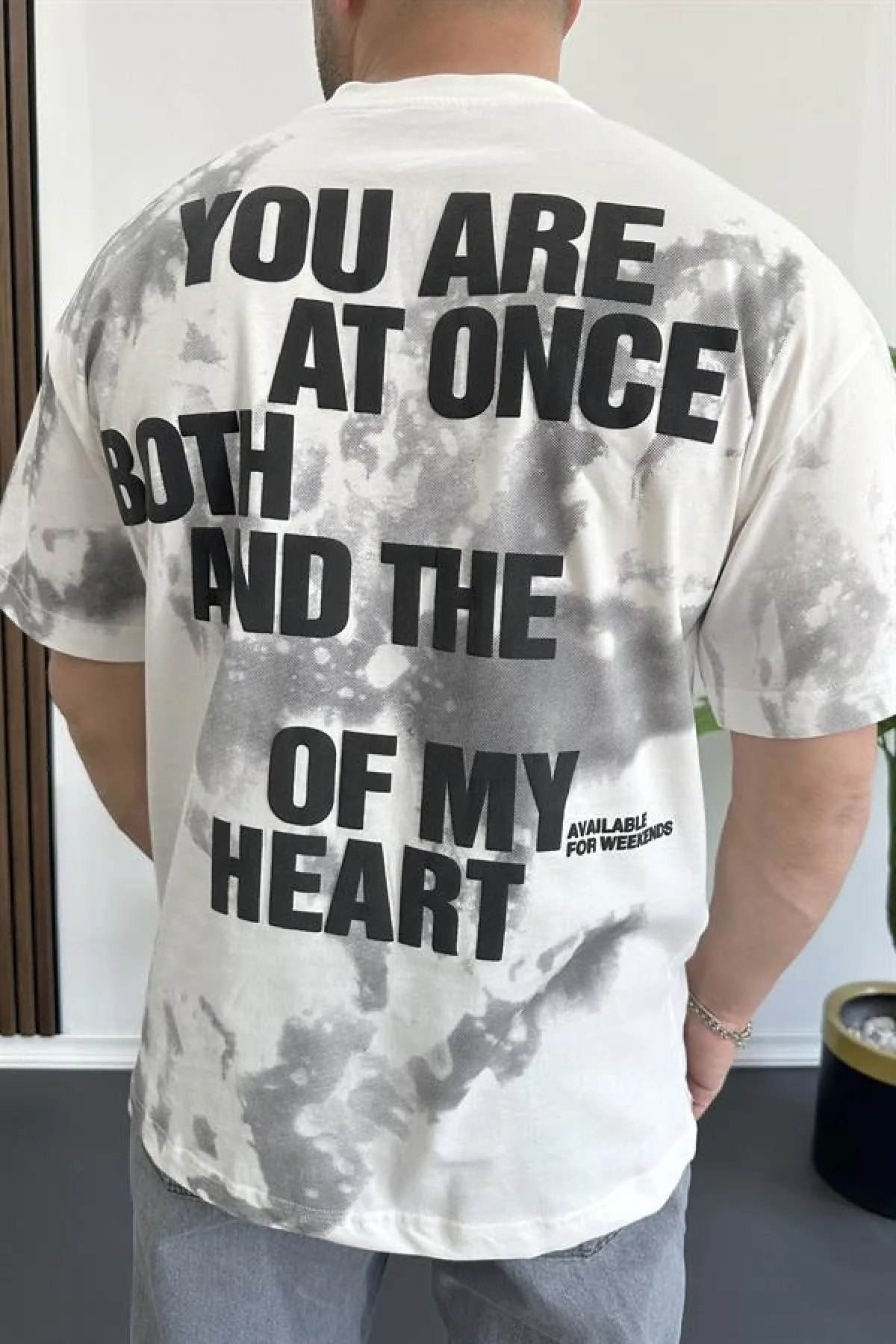Erkek Oversize Ön ve Arka Kabartmalı Slogan Baskılı Tişört Beyaz Edw368