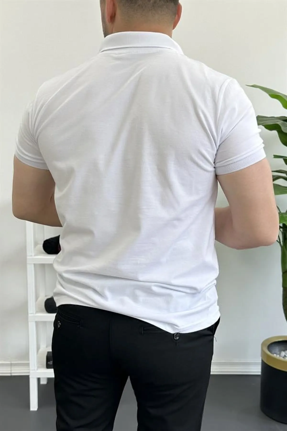 Erkek Slim Fit Düz Renk Pamuklu Soft Polo Tişört Beyaz Edw365