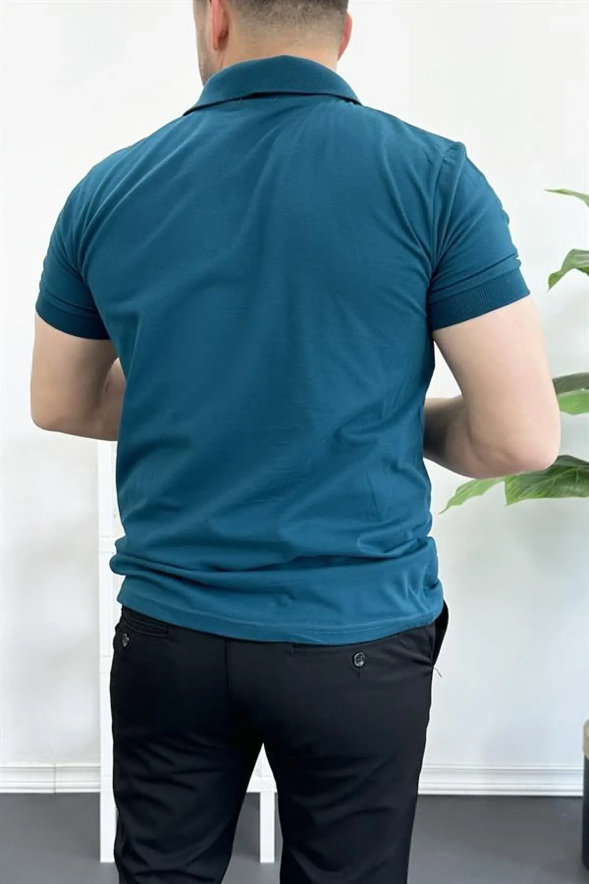 Erkek Slim Fit Düz Renk Pamuklu Soft Polo Tişört Mavi Edw365